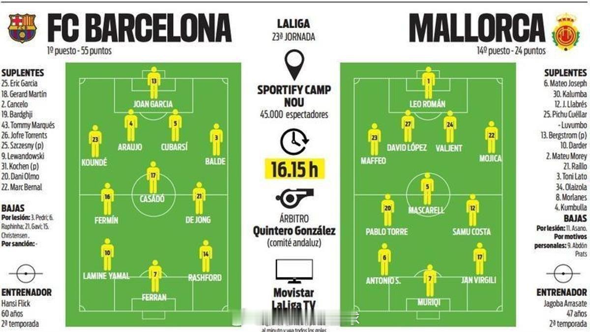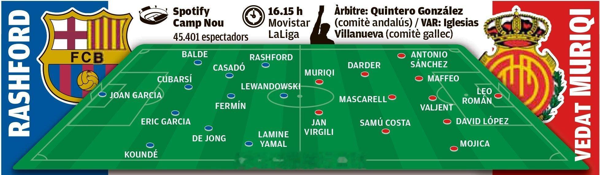 媒体预测巴萨VS马洛卡比赛首发阵容。巴萨至死不渝红蓝魂巴萨vs马洛卡 cr:萨