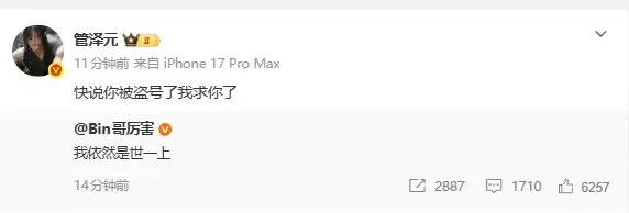 那么问题来了Bin割到底是不是世一上啊?如果他不是你认为谁是呢?