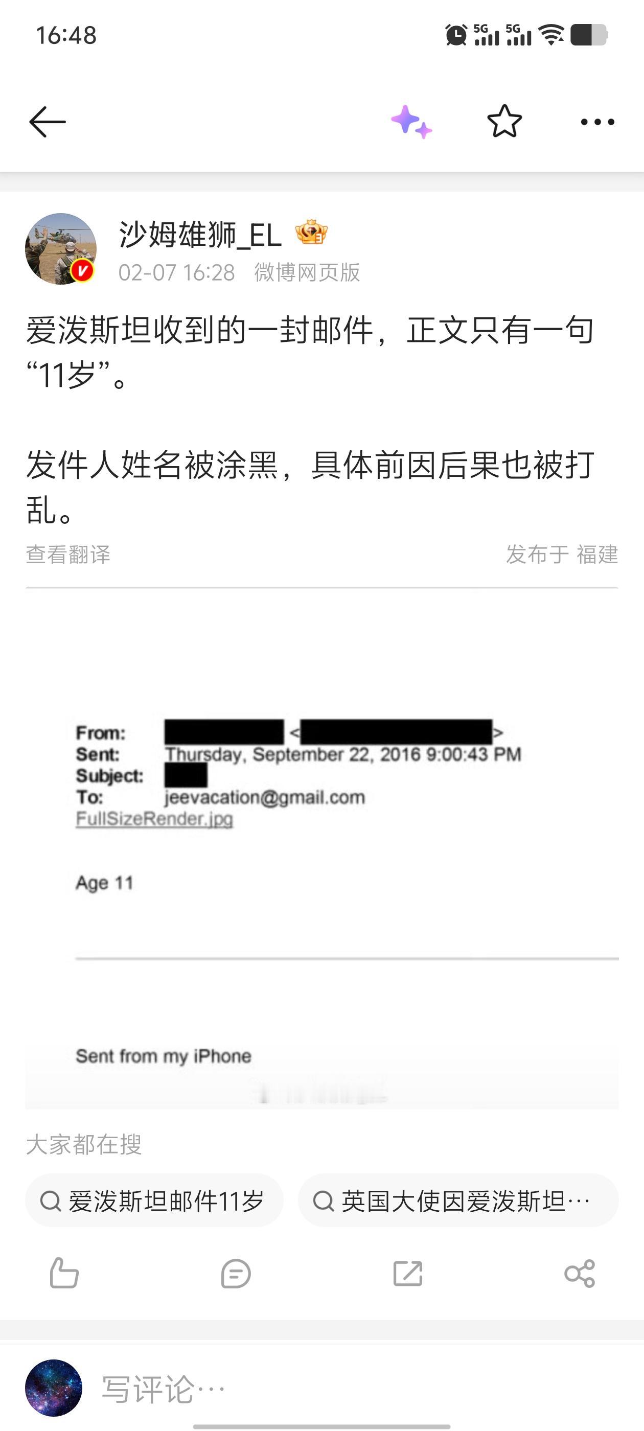 我倒是挺“佩服”美国司法部的工作人员,给三百万份、多达数千万页文件、照片“打码”,他们是怎么做到的[捂脸]。这可不是几个人花几天时间就能搞定的,可能要几百人忙活很久,而这么多人它们又是怎么做好保密工作的?我无比好奇,图中究竟是谁发送的邮件。。
