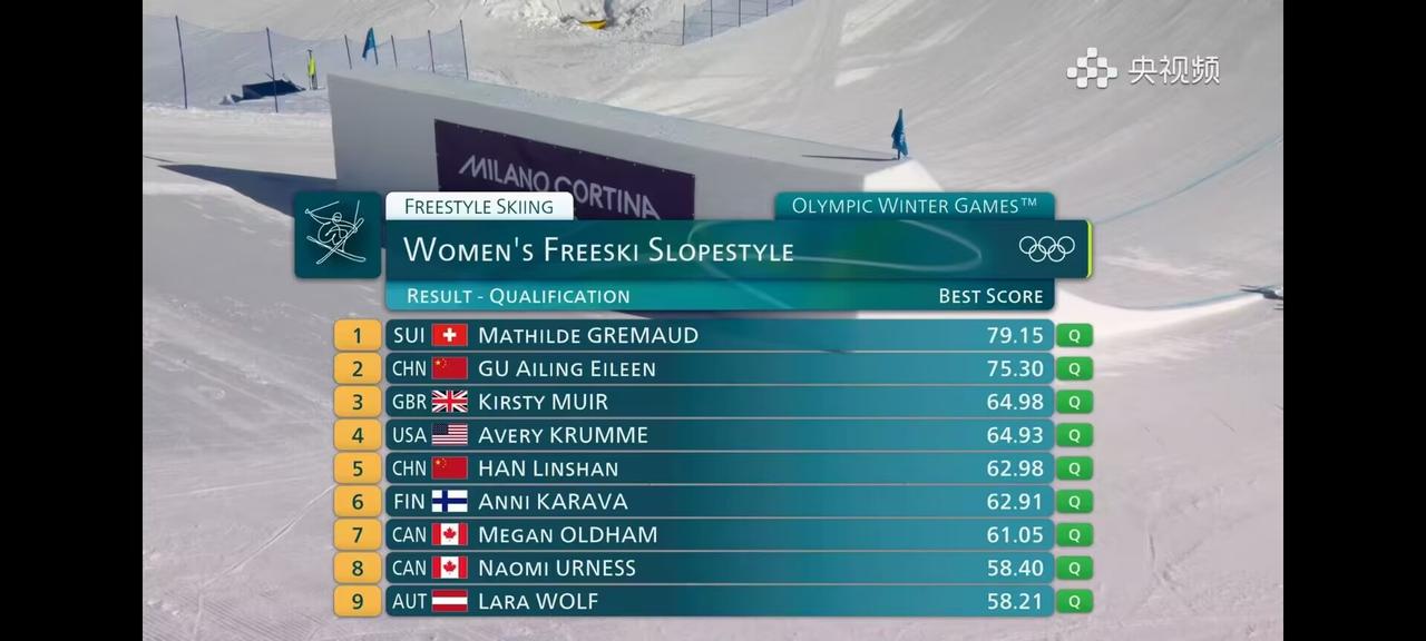 有惊无险!谷爱凌、韩林杉和刘梦婷三位中国选手分别以第2、第5和第11晋级女子自由式滑雪坡面障碍技巧决赛!四位中国选手只有杨如意遗憾被淘汰。不出意外的话,谷爱凌决赛很有机会能站上领奖台。至于能否金牌,就要看发挥了,毕竟这个项目不是她第一主项。U型池才是她第一主项。