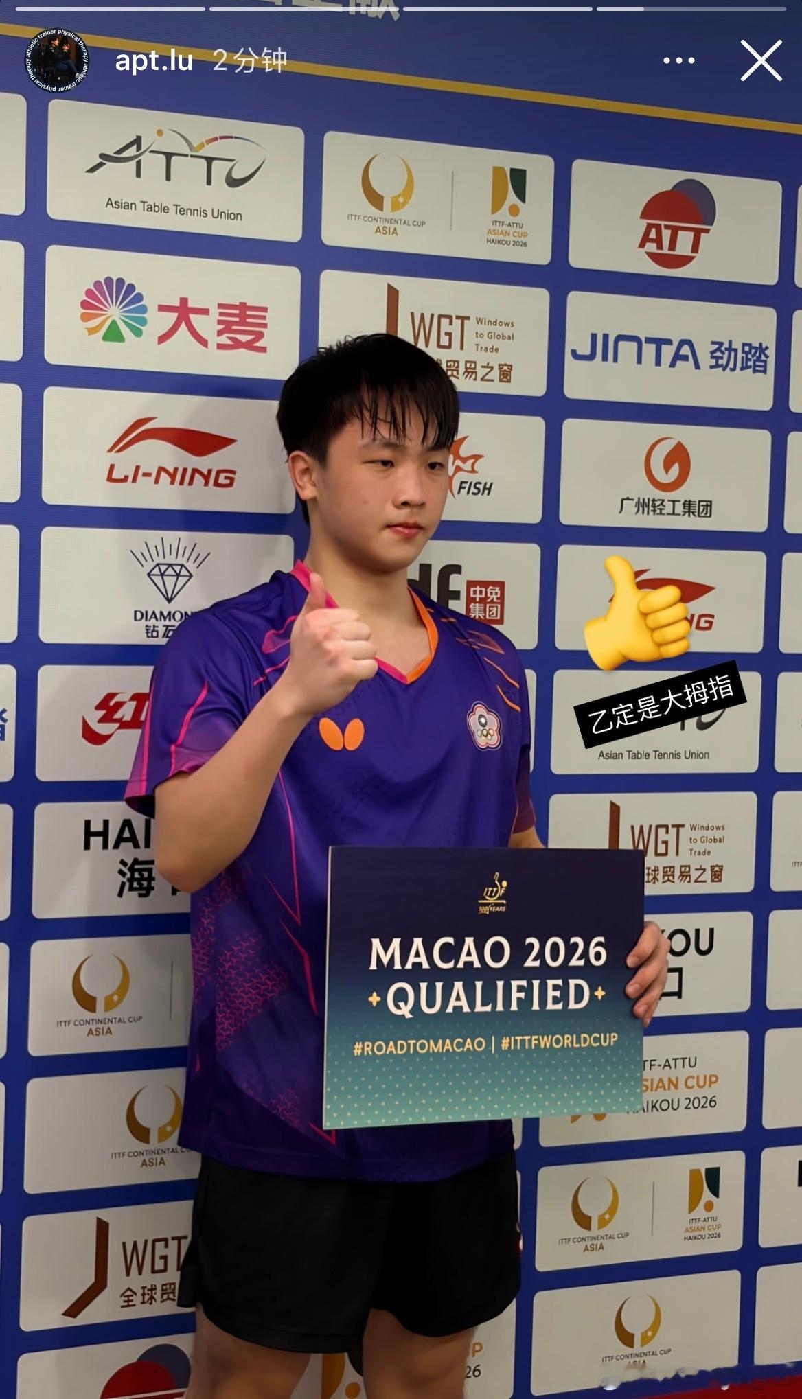 张佑安获得直通澳门世界杯2026参赛资格🎫📷apt.lu