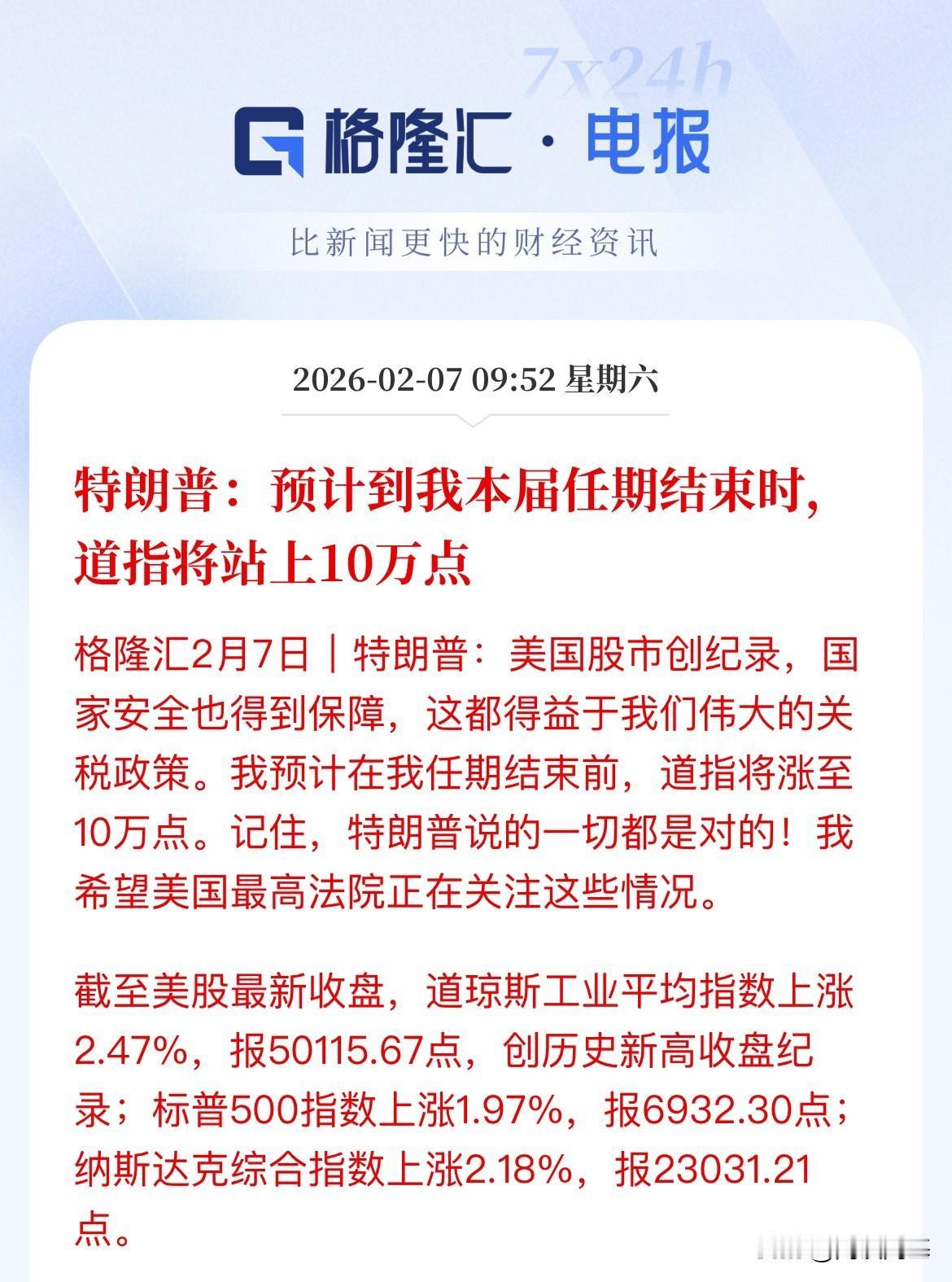 现在追还来的及吗?真敢说啊!道指刚上50000点,特朗普就说在他任期结束,道指要上10万点,以四年为一届,他的任期还有2年11个月,也就是道指近三年的时间要翻倍了 也就是在接下来的35个月内,道指要涨幅50000点,每个月要涨幅超1400点,累计涨幅要近3%,这还是稳稳的涨,但凡跌点,那这个任务只能交给别人了。