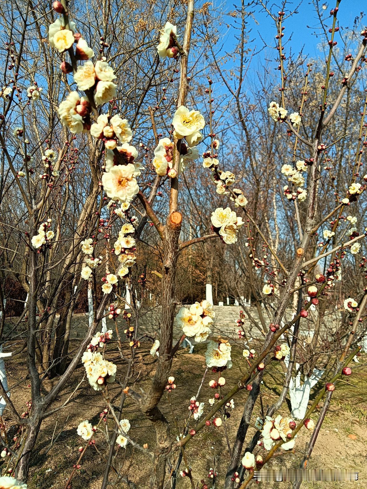 今天又是一个大晴天,闲来无事下午我坐地铁去了南三环外的植物园转悠。想着快过年了,植物园肯定在布置迎新活动,结果门庭略显冷清!可能是人们都忙着节前采购年货大搞卫生,游园的人并不多,不过,公园里的梅花开的正艳,一簇簇的压在枝头上芳香扑鼻还“勾引”来了飞舞的蜂蜂!登上公园制高点的山尖举目远眺,对面就是巍巍白鹿原,仔细辨别依稀可见山坡下绽露出“庐山真面目”即将开张营业的西安火车东站!以前这一片这一带还是村民们牧羊牧马的浐河滩,受东站建设项目的带动,昔日无人问津的河滩地已经是炙手可热的东南郊区楼盘开发和宜居的热土!植物园 植物园游随手拍 一览植物园 自拍植物园 西安都有哪些值得去的地方