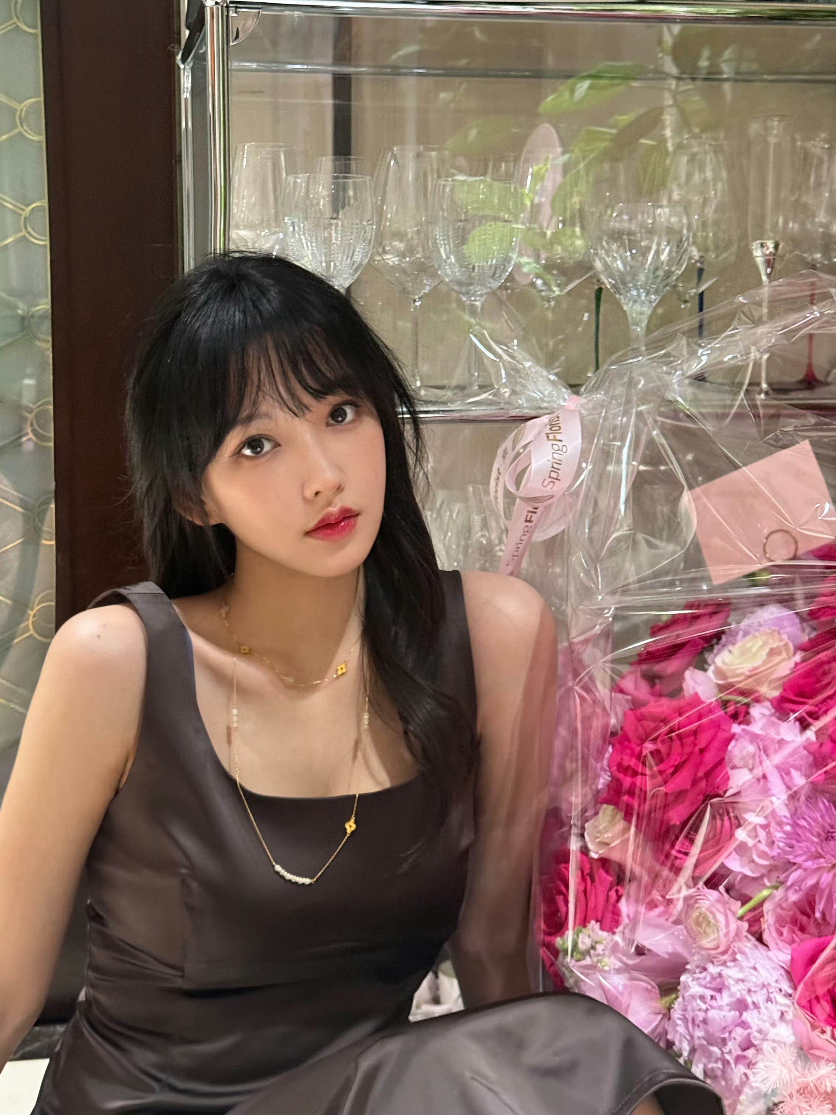 刘亦菲喝醉酒微醺的状态被拍到,脸上已经泛起了红晕,被拍到后眼神微怒