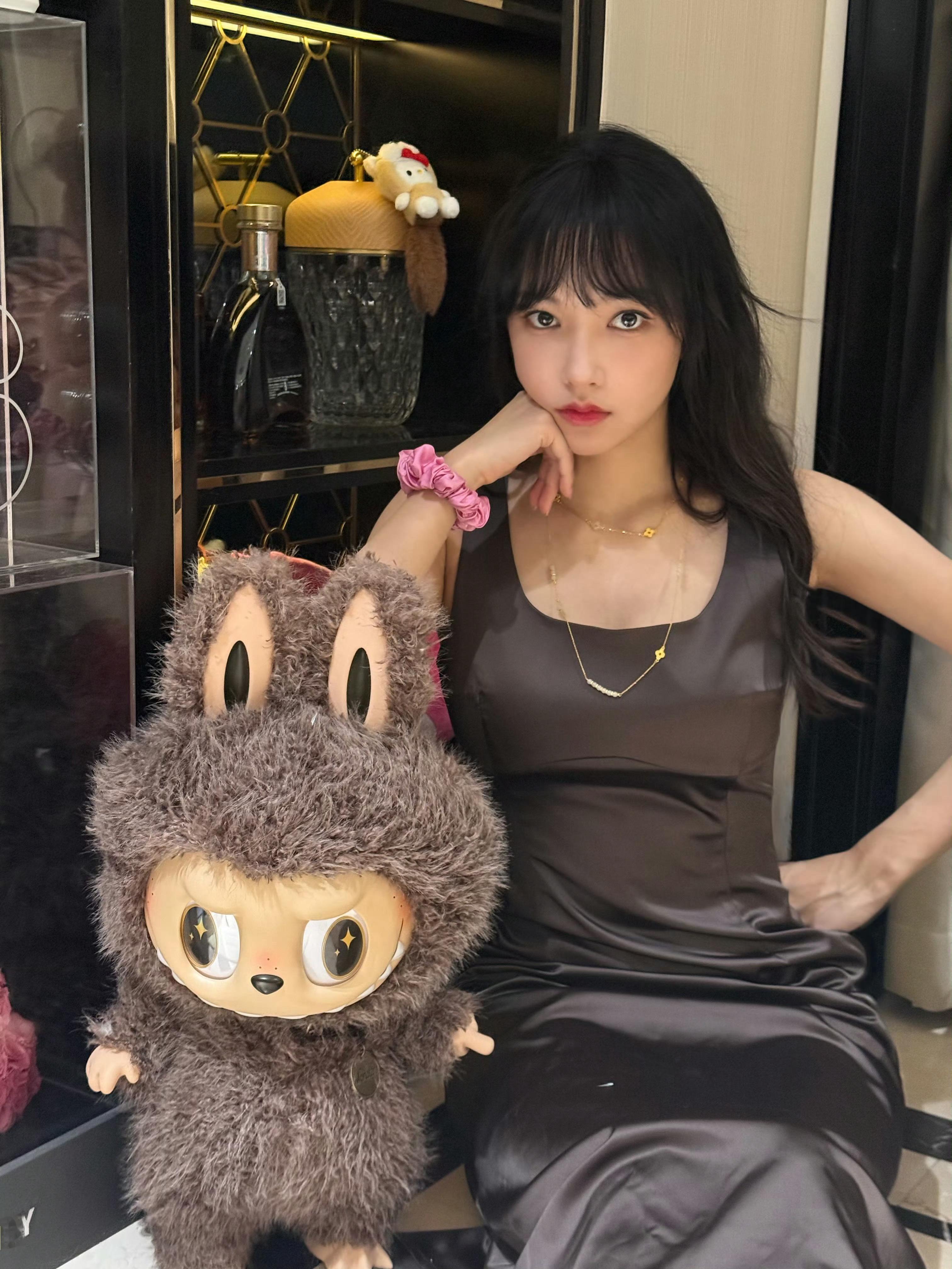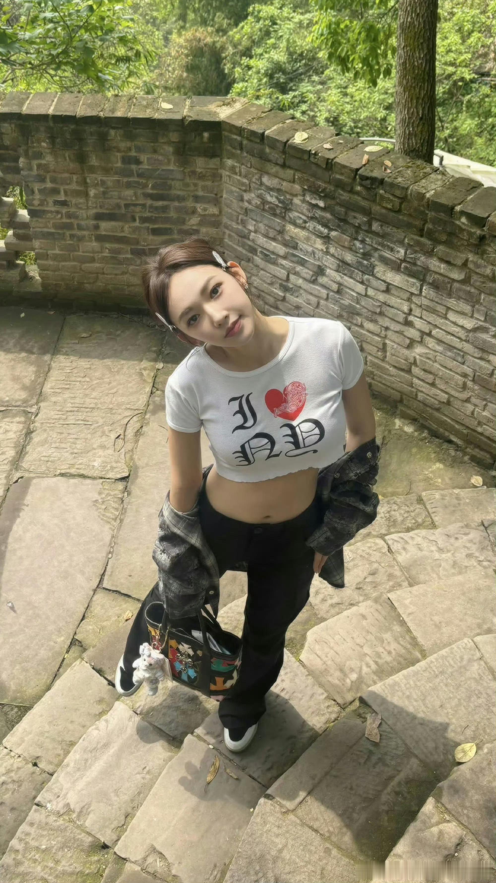 张天爱跟素人合影,胯真的好宽,大宅院似的