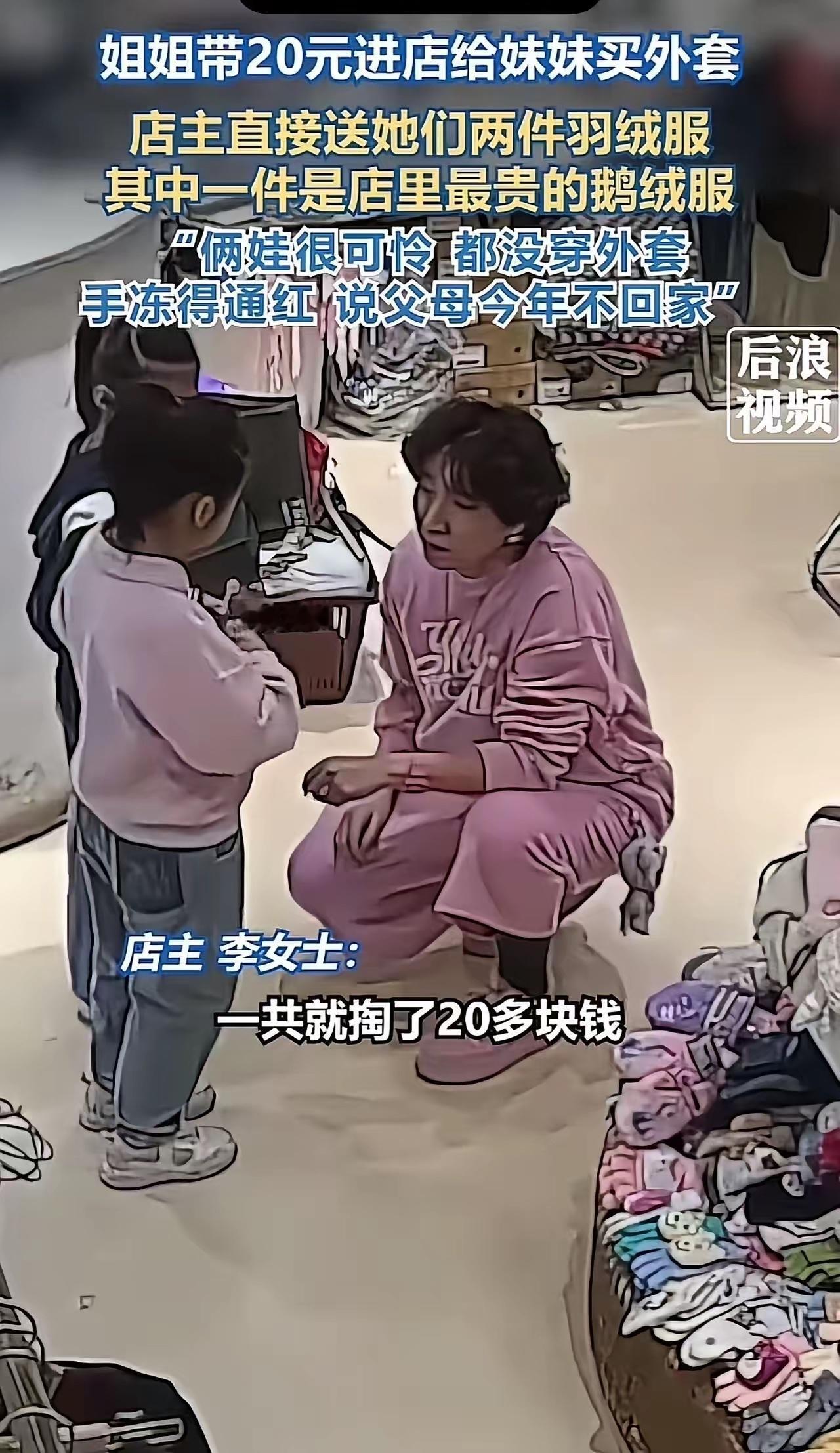 天津6岁姐姐拿着自己攒的20多块钱给妹妹买外套,老板看她们穿着单薄,直接送了她们一人一件羽绒服,成本就要1000多!老板娘:“我自己也是有孩子的人,见不得孩子挨冻!” 有网友表示:为老板娘的善良感动,祝你马年生意兴隆,财源滚滚,也希望孩子的父母回家看看孩子,为人父母要有责任心,让孩子有父母的关爱才是最重要的,祝天下的孩子们都幸福健康平安。 这善良老板娘用爱心帮助了小姐妹俩渡过寒冷冬天,事情虽不大但非常暖人心也给天津人树立好形象,顺祝老板娘商铺生意兴隆财源广进。 很难想象一个6岁的小朋友,会想着给自己的妹妹挑新衣服,这是攒了自己的小零花钱有多久了!这份对妹妹的疼爱看着就让人觉得软乎乎的。 老板免单的举动,其实也是给孩子上了一堂温柔的课,让她知道自己的心意被看见、被珍惜,这份善意会记在孩子心里,说不定以后她也会学着把这份温柔传递给别人,这比多少说教都管用。 六岁娃把皱巴巴的零花钱,攥成护着妹妹的“小铠甲”;好店主把货架上的童装,暖成裹着善意的“一束光”。20块买不来棉袄,却能装下满屋子的真性情——这样的温柔该被千万人传,这样的店就该天天客满、越开越旺! 对此大家怎么看呢