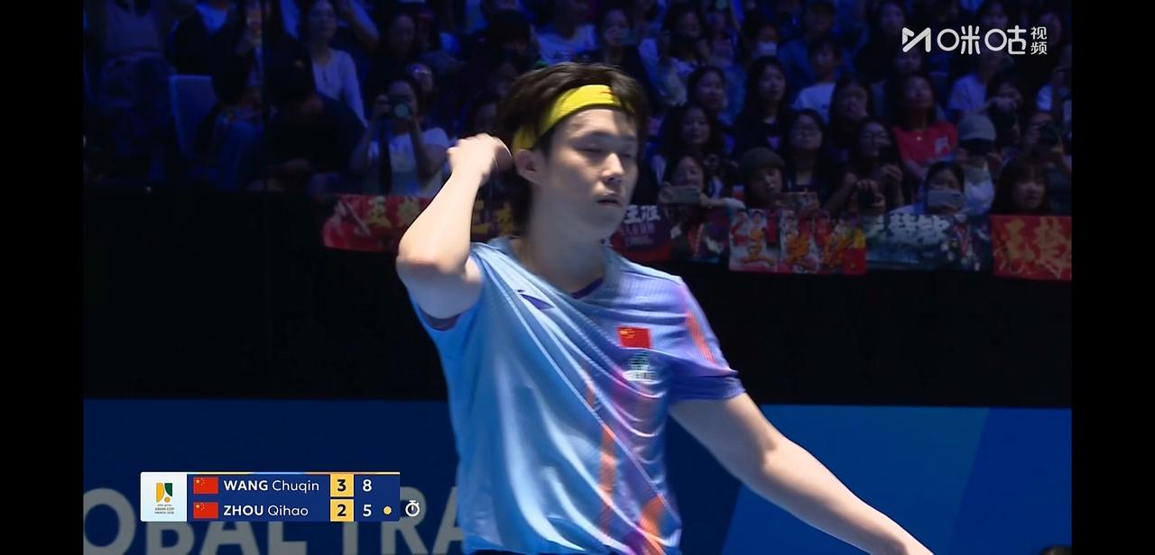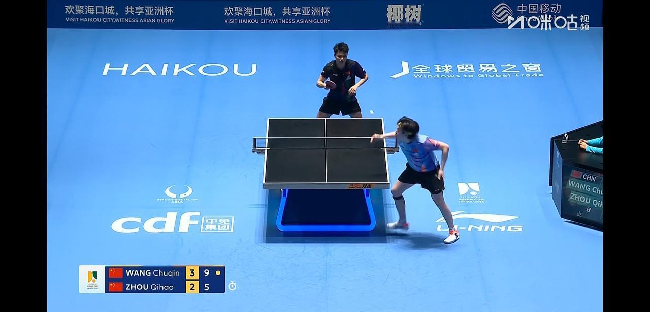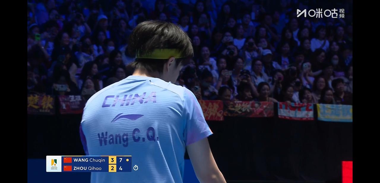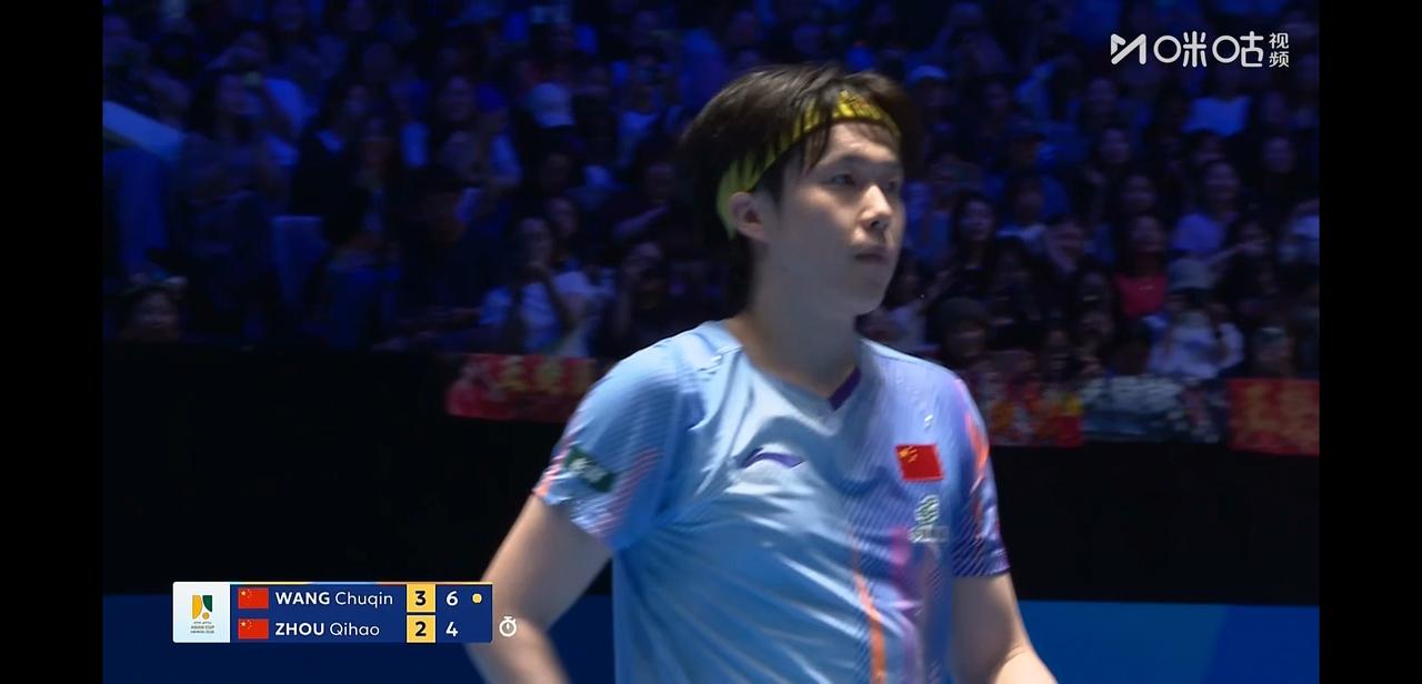 亚洲杯男单1/4决赛, 王楚钦今天对手是队友周启豪。 两个人不仅是队友, 还同属一个俱乐部, 从小一起练球, 其熟练程度不言而喻。 两个人都打的非常好, 现场的尖叫鼓掌声震耳欲聋, 你来我往, 精彩球一个接一个。 前四局两个人战至2:2平。 第五局王楚钦11:6拿下, 第六局比分来到6:3周启豪要了暂停, 暂停回来周启豪换了高抛发球, 拿到一分。 但是最终王楚钦还是以11:6拿下第六局 大比分4:2王楚钦晋级半决赛, 恭喜楚钦。 今天周启豪也值得掌声, 两个人也算是打爽了。
