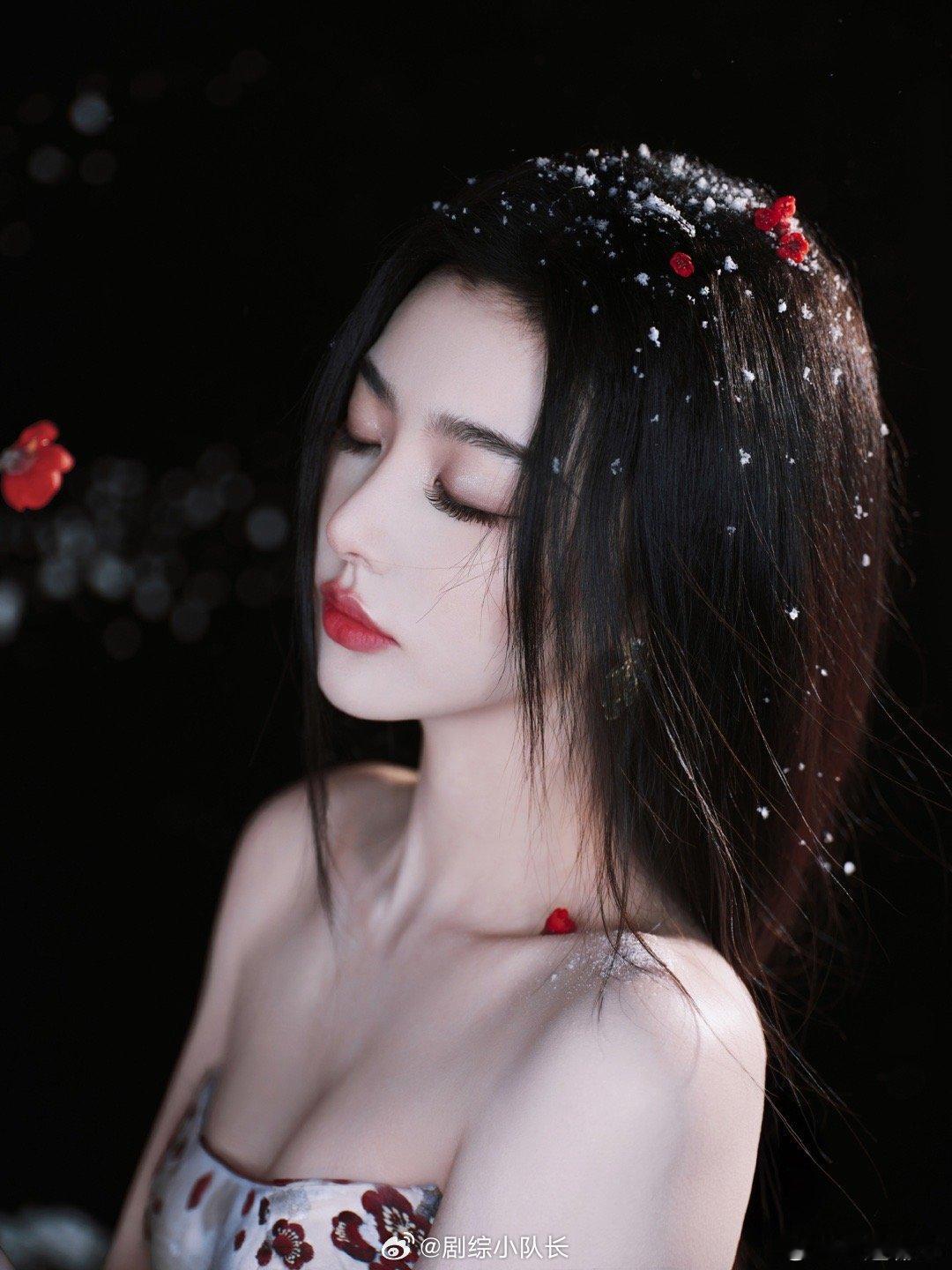 孔雪儿 全世界最适合雪的女人 孔雪儿的“雪中红梅”造型,堪称一次成功的美学实验。她打破了“雪景必配素雅”的常规,用极致的色彩对比和自身的气质,塑造了一个既具有传统意象美、又充满现代冲击力的惊艳形象。