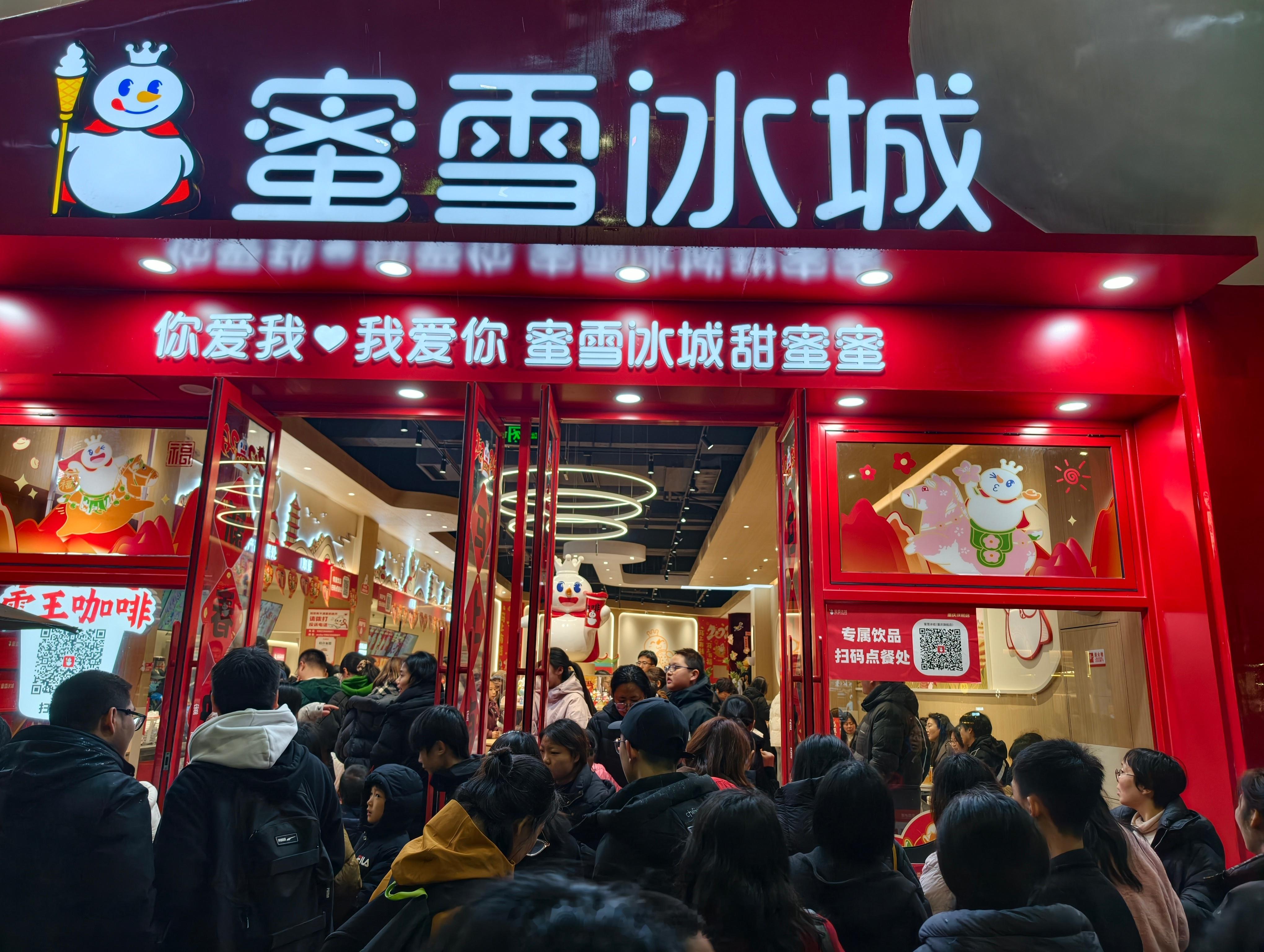 打卡家门口的蜜雪冰城全球旗舰店人是真多多多多啊