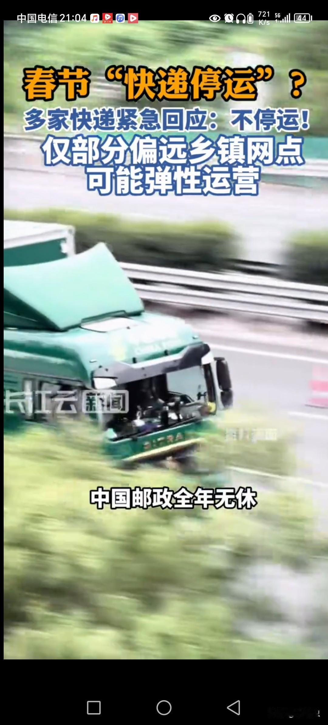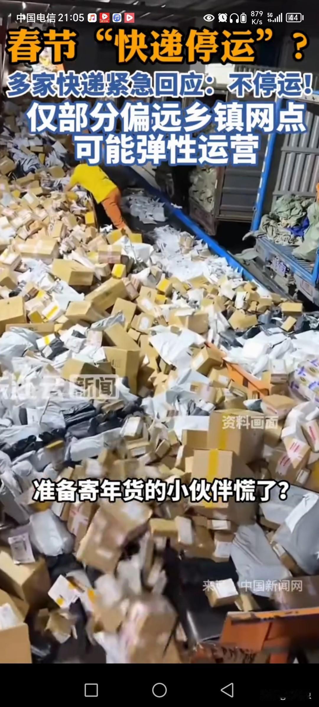 快递今年停运吗? 春节快递,其实是最多的。 比双11,双12还多,特别偏远山区城镇,春节快递,都是平时几倍。 但快递内部也内卷,知名各大快递公司,你不放假,他也不放假,一放假就损失不少快件,谁也不愿意放弃。 除非大家一起放假。 毕竟快递公司那么多。 邮政一年到晚都没停运过。 这可累坏,快递员工。 比蜜蜂还忙。