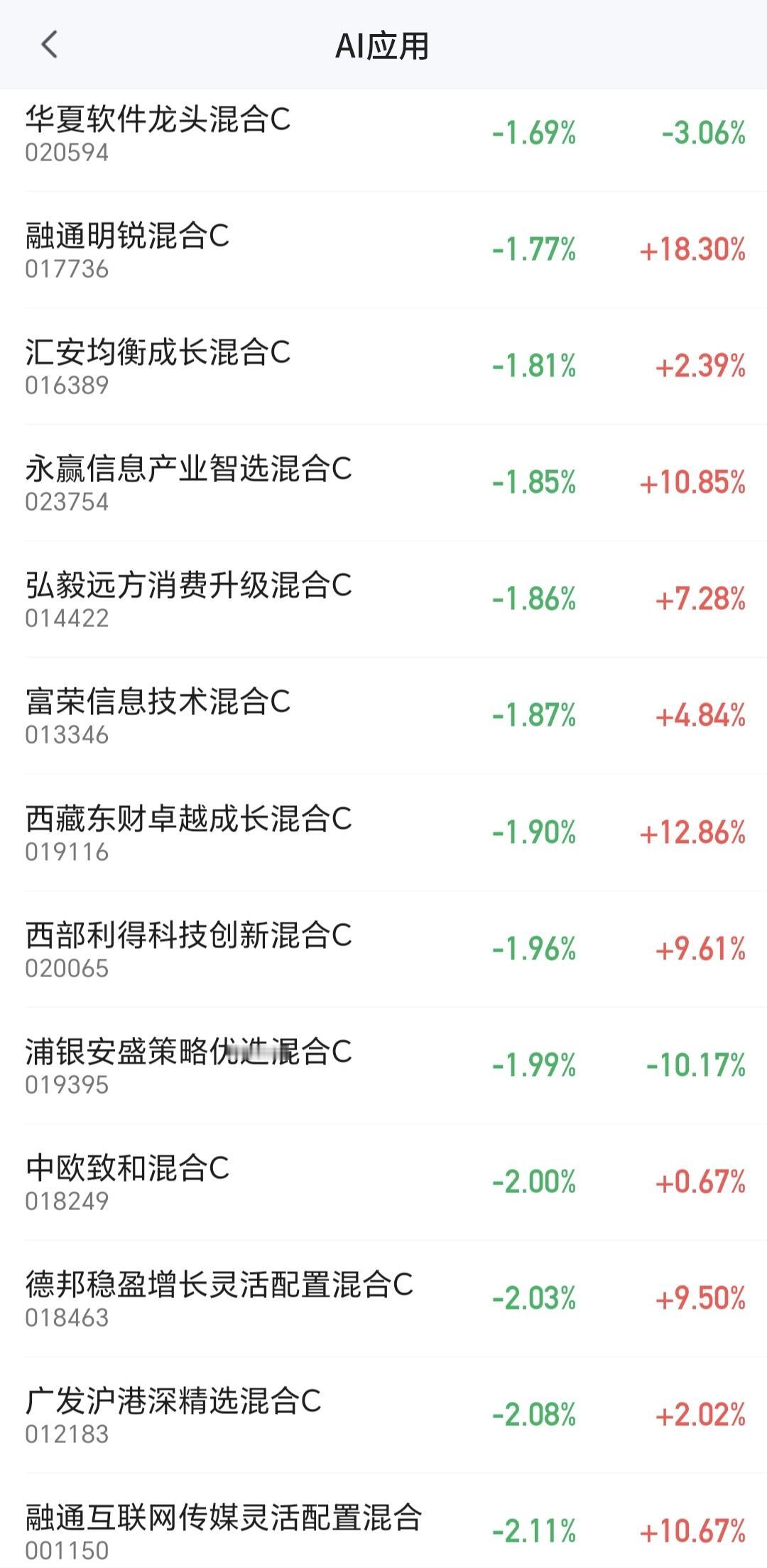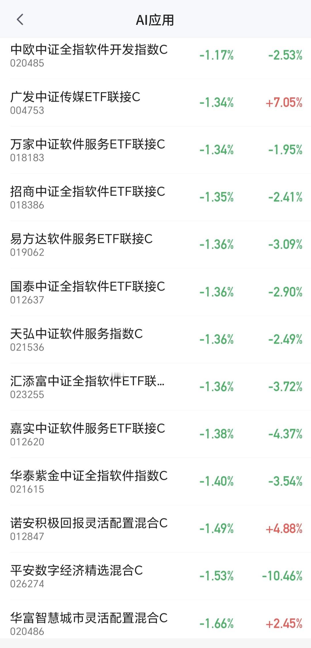 基金:AI应用板块应该怎么办 AI应用板块星期五是下跌,是连续第3个交易日下跌,板块下跌1.51%,持有人数在所有板块当中排名第9位,这个板块的散户人数也是比较多的,这个板块的基金涨跌幅度竟下面的截图3至6,下跌幅度最小的是0.53%,下跌幅度最多的是2.66%。 看下面的截图7,这是AI应用板块日K线图,现在的位置处于这个下跌通道中,这个板块日线级别处于下跌趋势中,想进场的人需要耐心等待上场突破这个下跌通道的上轨线,才可以考虑要不要进场,如果下跌偏离这个下跌通道的下轨线很远,也是可以考虑要不要进场博弈个反弹。 看下面的截图8,这是AI应用板块周K线图,现在的位置处于这个上涨通道内,距离上涨通道的下轨线很近,如果缓慢下跌到这个上涨通道的下轨线附近,长线持有的人可以考虑要不要进场,如果以中大阴线跌破这个上涨通道的下轨线,长线持有的人也需要注意风险。 AI应用板块日线级别处于短期下跌趋势中,周线级别处于上涨趋势中。也就是说,这个板块短线有震荡调整的需求,长线的大方向向上,你需要根据自己是短线还是长线持有来决定自己的操作策略,短线持有者需要耐心等待进场的机会,长线持有者可以坚定持有。 每个人需要知道自己是短线持有者还是长线持有者,短线持有者和长线持有者的操作策略是不一样的,需要根据自己的情况来决定自己的操作策略。
