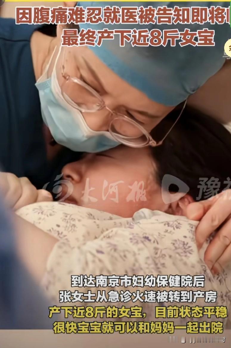 南京一女子,由于腹痛难忍就去了医院,结果腹部平平的她却被告知,“你马上要生了!” 女子今年三十五岁,近日她由于腹痛难忍,就去了医院。结果,经检查她的宫口已经开了三指了! 据悉,她工作一直都很忙,生理期也很不规律。期间,即使腹部有胎动。她也以为,是肠胃蠕动的正常现象。 再加上,自己的身材高挑匀称,也没有孕吐等症状。所以,即使怀孕到41周,她都一直不知道孩子的存在的。 都说瓜熟蒂落,女子进入产房没多久,就生下了一个八斤重的女婴。好多网友,在评论区惊呼“这不可能!” 但也有网友,表示:“不用质疑,真有这样的人!我以前有个同事,她就因为身型胖肚子大,生理期紊乱,所以就一直不知道自己怀孕了。 结果有一次,她肚子痛去厕所,就把孩子生出来了,还是个大胖小子。” 友友们,你身边有这样粗心的妈妈,和佛系的孕宝吗?