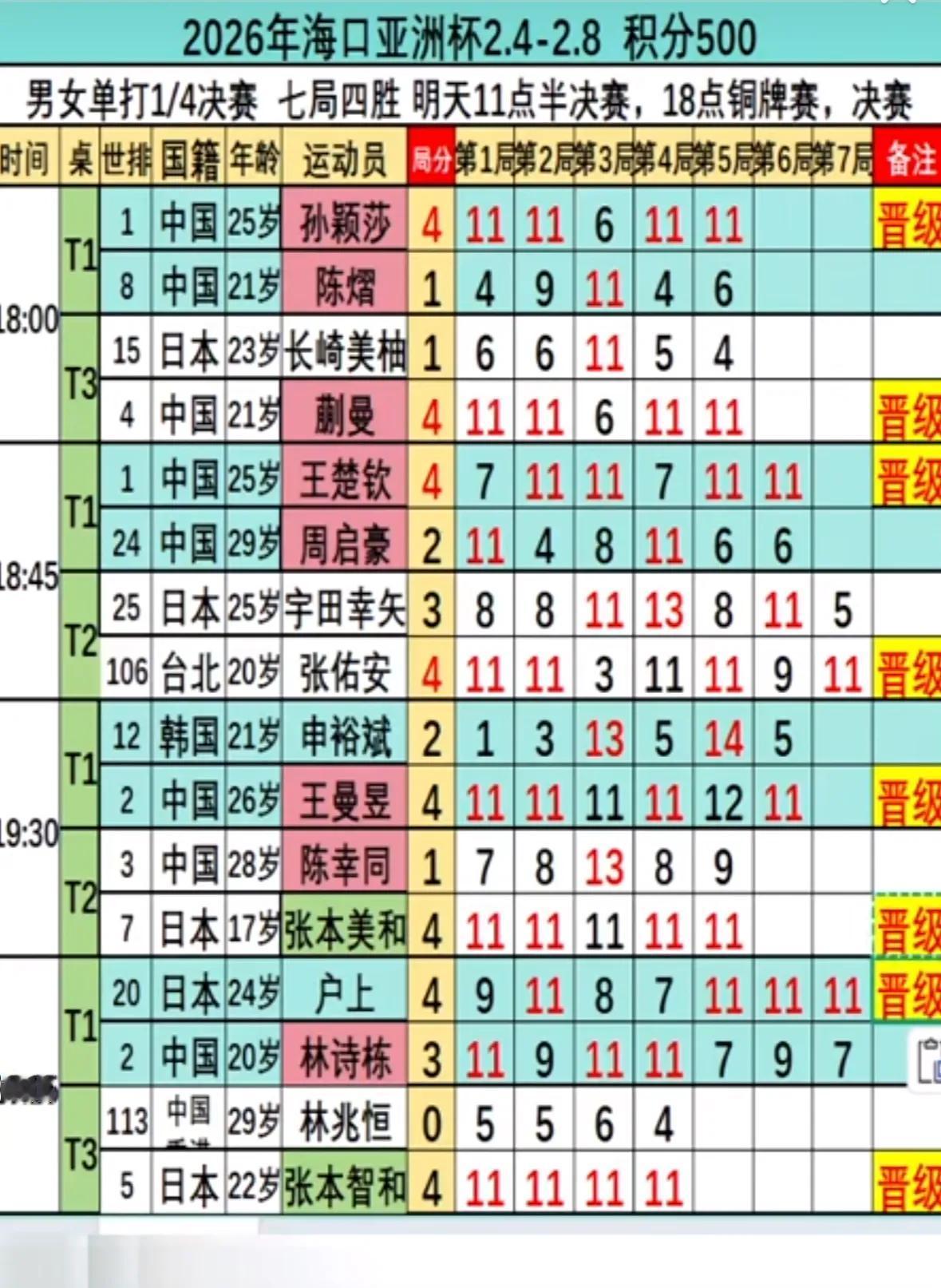 ✅快讯,亚洲杯乒乓球男女单打1/4决赛最新战报🆕⬇️⬇️ 女单孙颖莎、蒯曼、