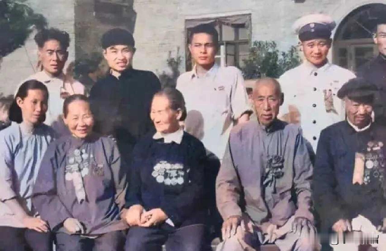 这是一张让人感动落泪的照片。这张照片拍摄于50年代,镜头中的几位老人都是一辈子面朝黄土背朝天的农民。但他们有一个共同的名字,那就是英雄的家人。 从左边起分别是:刘胡兰烈士的母亲胡文秀,黄继光烈士的母亲邓芳芝,抗战时期的著名拥军模范戎冠秀,董存瑞烈士的父亲董全忠,罗盛教烈士的父亲罗迭开。他们的儿女都为了祖国奉献出了宝贵的生命。 向英雄致敬!向英雄的家人致敬! (图片来源网络)