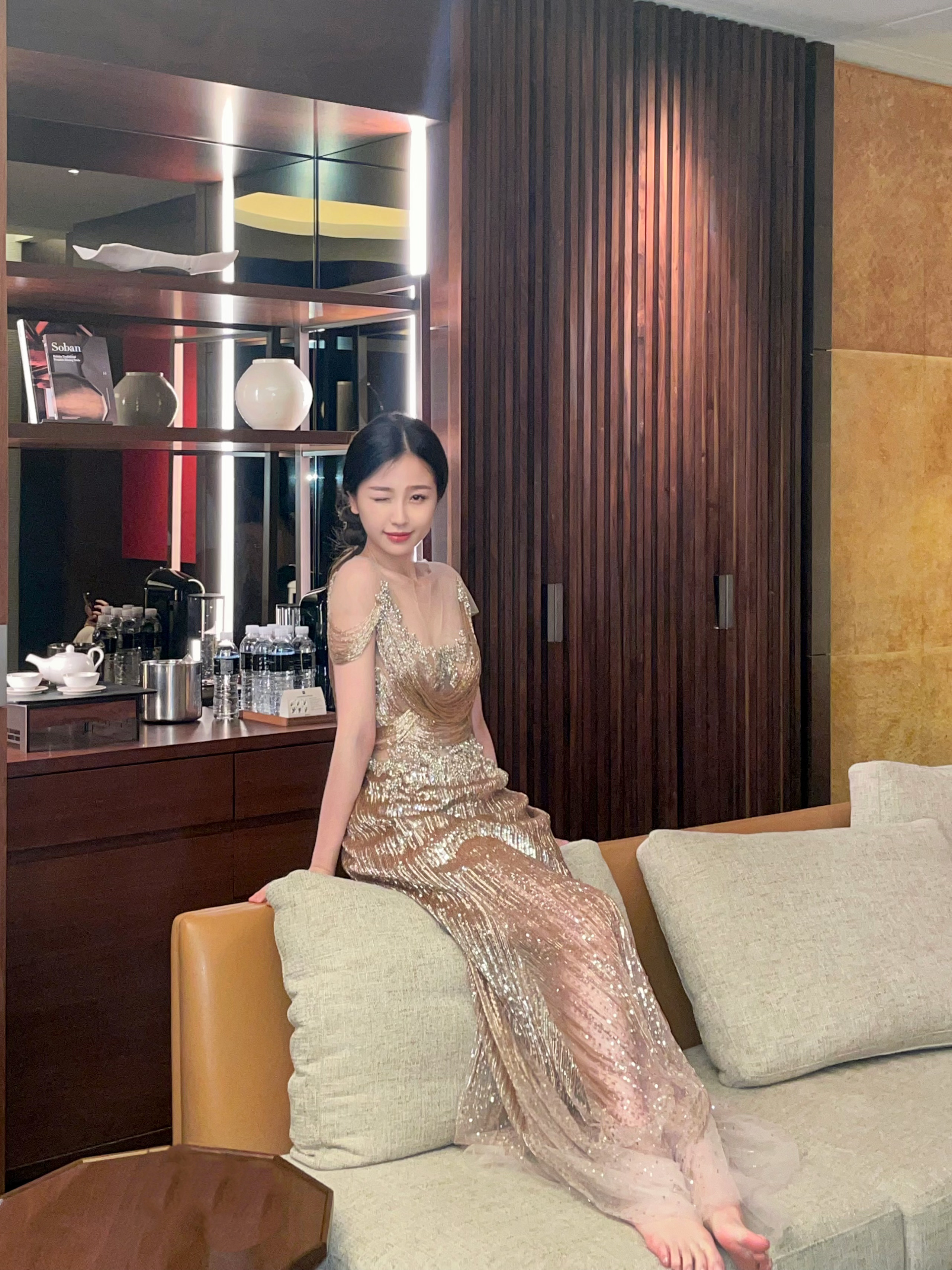 刘亦菲喝醉酒微醺的状态被拍到,脸上已经泛起了红晕,被拍到后眼神微怒