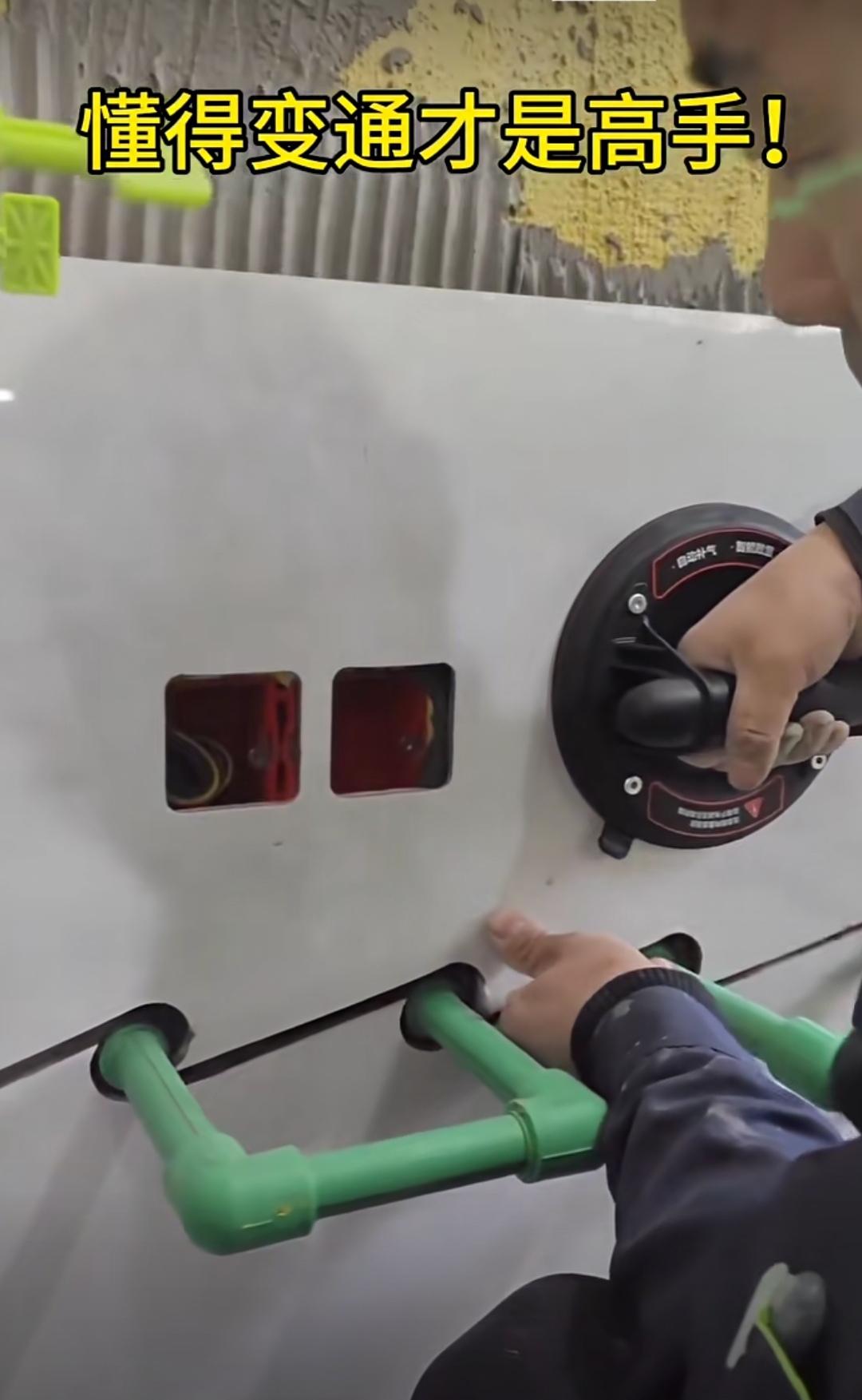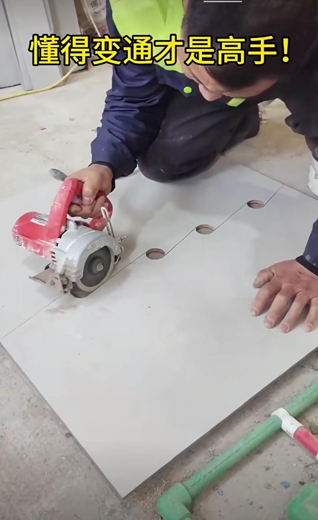 面对复杂墙面,施工时懂得灵活变通,方能让贴好的瓷砖面更添光彩! 瞧瞧画面中的场景,一块瓷砖上竟有7个洞眼,除了两个插座开关盒洞,还有5个水管洞。 碰到这种情况,师傅一般会按4个直排水管中间位置的尺寸将瓷砖从中切开,再进行铺贴。 然而,画面里的这位师傅却不按常理出牌,他先开洞后斜切来切开瓷砖,让瓷砖呈波浪形态,瞬间带来不一样的视觉体验,比直接切割美观许多。 由此可见,想要把瓷砖贴得美观,懂得灵活变通才是关键所在。 大家说说,是不是这个理儿? 装修贴砖技巧 瓷砖巧用