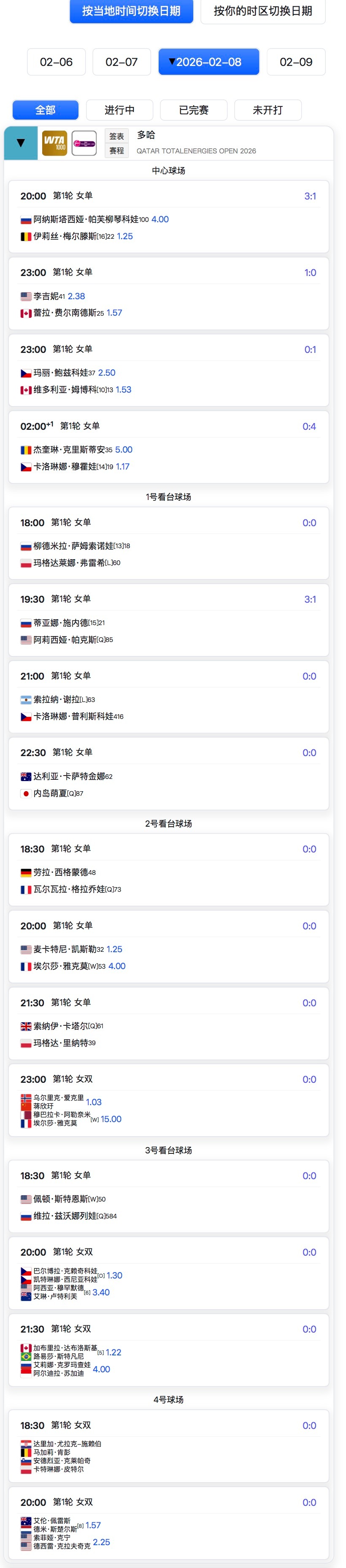 【WTA多哈赛2月8日赛程⏰】明天暂无郑钦文、王欣瑜的单打比赛,需要等到9日。w