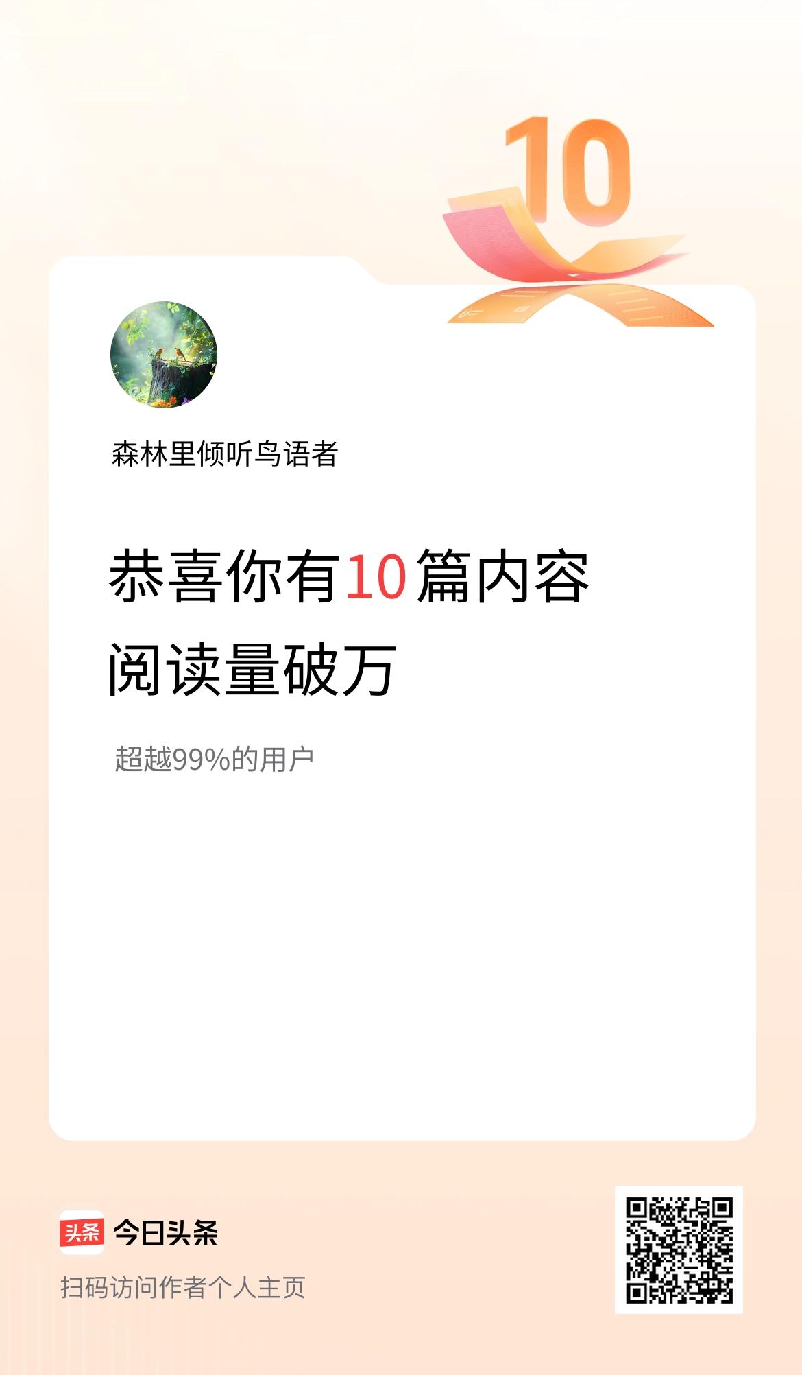 我在头条有10篇内容阅读破万了!
