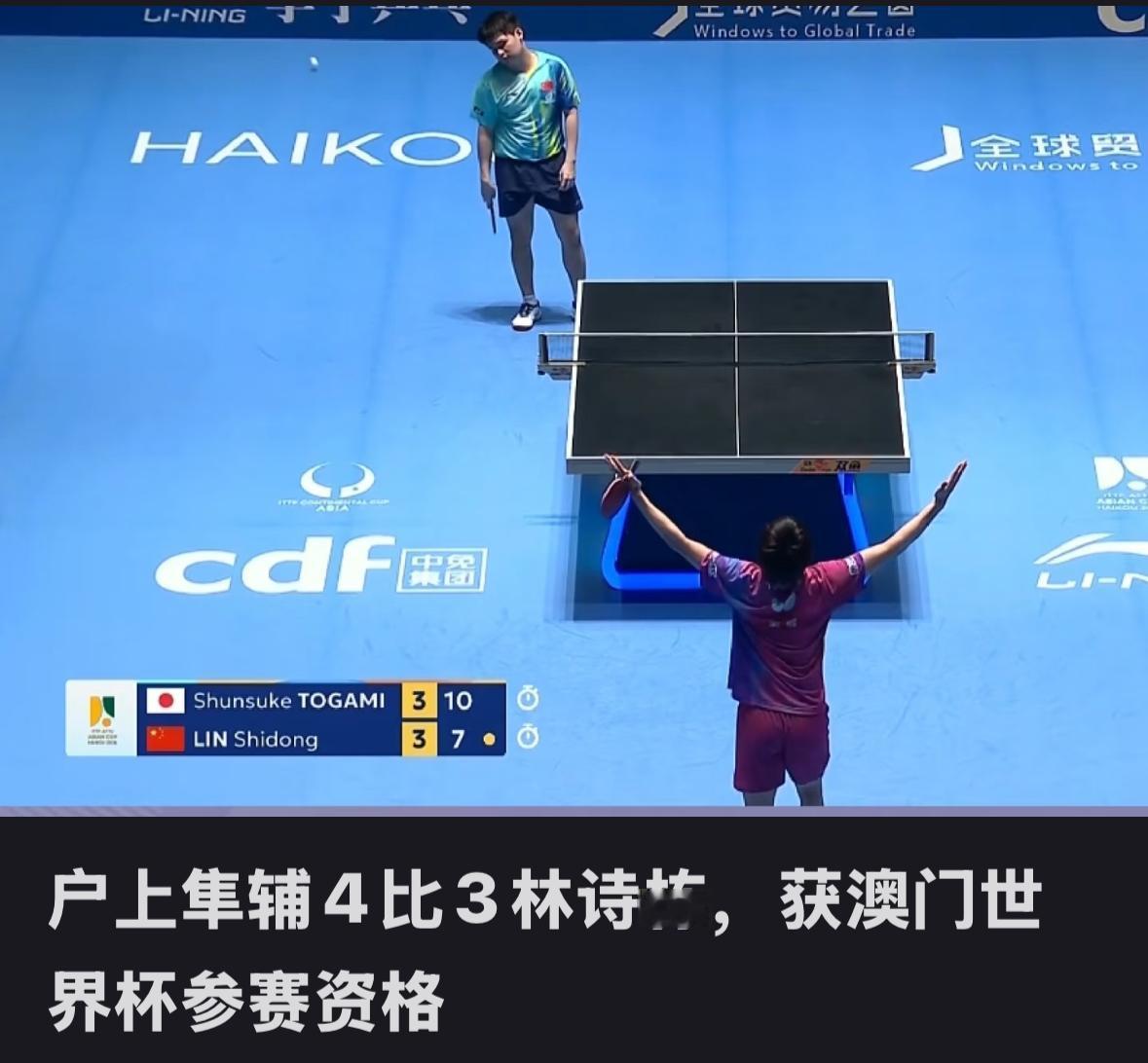 林诗栋大比分3:1领先被户上隼辅翻盘 无缘亚洲杯男单半决赛! 2月7日,海口亚洲杯, 男单1/4决赛中, 林诗栋在大比分3:1的情况下, 被户上隼辅连扳三局, 太可惜啦, 林诗栋主场作战,被对手大逆转, 整个过程就是不可思议, 25年亚锦赛团体赛中, 国乒对阵日乒的时候, 幸亏筱塚大登上, 不然后果不堪设想! 男单四强就剩王楚钦一人啦, 这一次小石头没有走到张本智和面前,是时候总结一下自己的心理素质啦,灵活性和技战术啦, 男单四强, 王楚钦VS张佑安, 户上VS张本智和! 明天王楚钦加油!