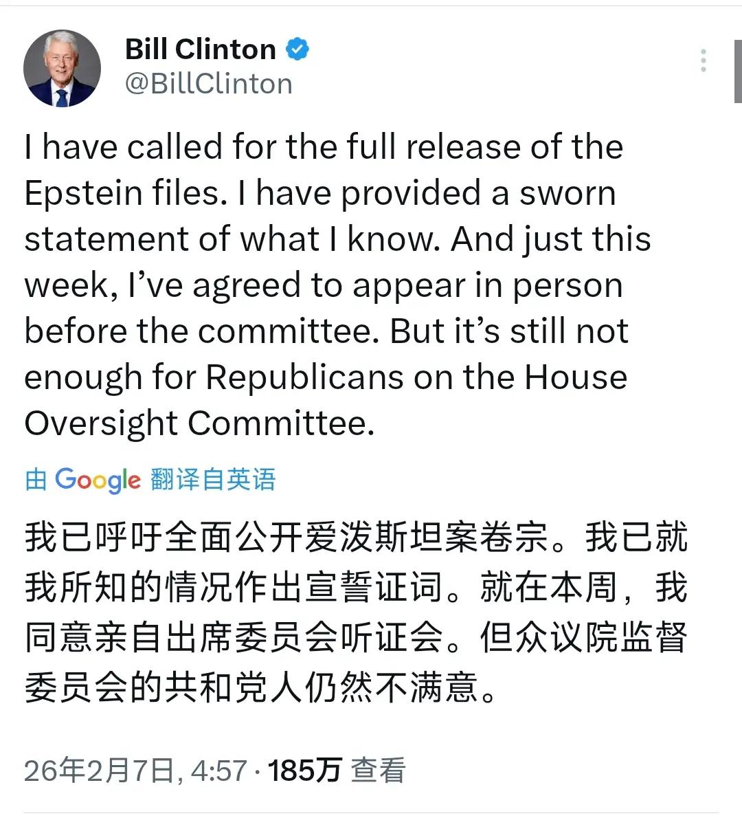 前段时间,所曝光的内容对克林顿夫妇非常不利。但是他们并没有做出回应。而这一次,克林顿夫妇出席国会的质证,并做出宣誓证词。也许这一对夫妻,更能让人们看到他们的真诚,也许跌入万丈深渊。但是有一点可以肯定,现在的总统从来不知道真话是什么意思?爱泼斯坦大丑闻 爱泼斯坦性侵案