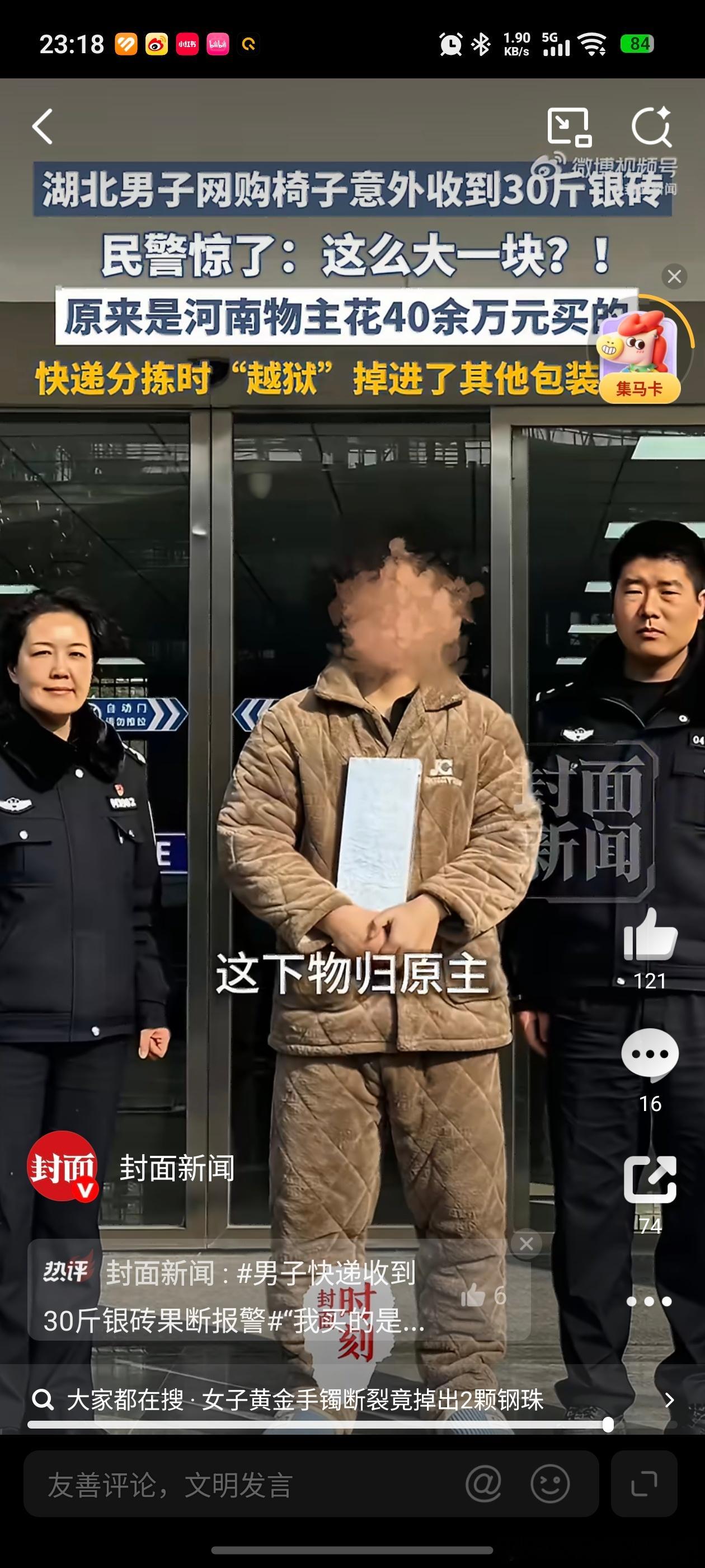 男子快递收到30斤银砖果断报警收到30斤银砖,第一时间报警解决,最终物归原主,这位大哥好样的。不过,这个穿着也是挺随性的。