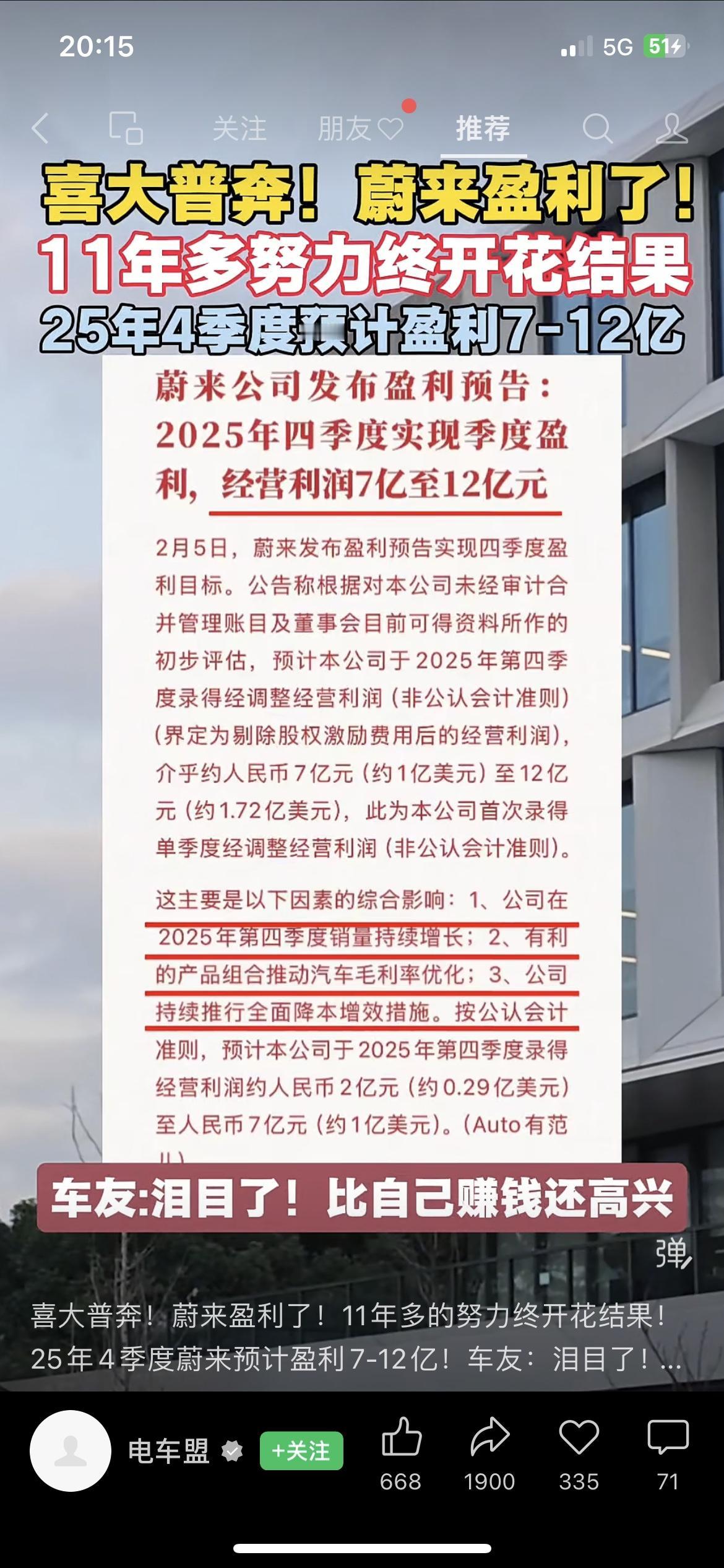 苦熬11年!蔚来终于盈利了! 2月5日蔚来发布2025Q4盈利预告,经调整经营利润预计7-12亿元,实现成立以来首次单季度盈利,车友圈直接炸锅,老车主纷纷感慨比自己赚钱还激动。新势力的盈利不是终点,是行业从烧钱转向造血的关键信号。 你会加仓蔚来相关ETF,还是再等等? 蔚来盈利 新能源汽车