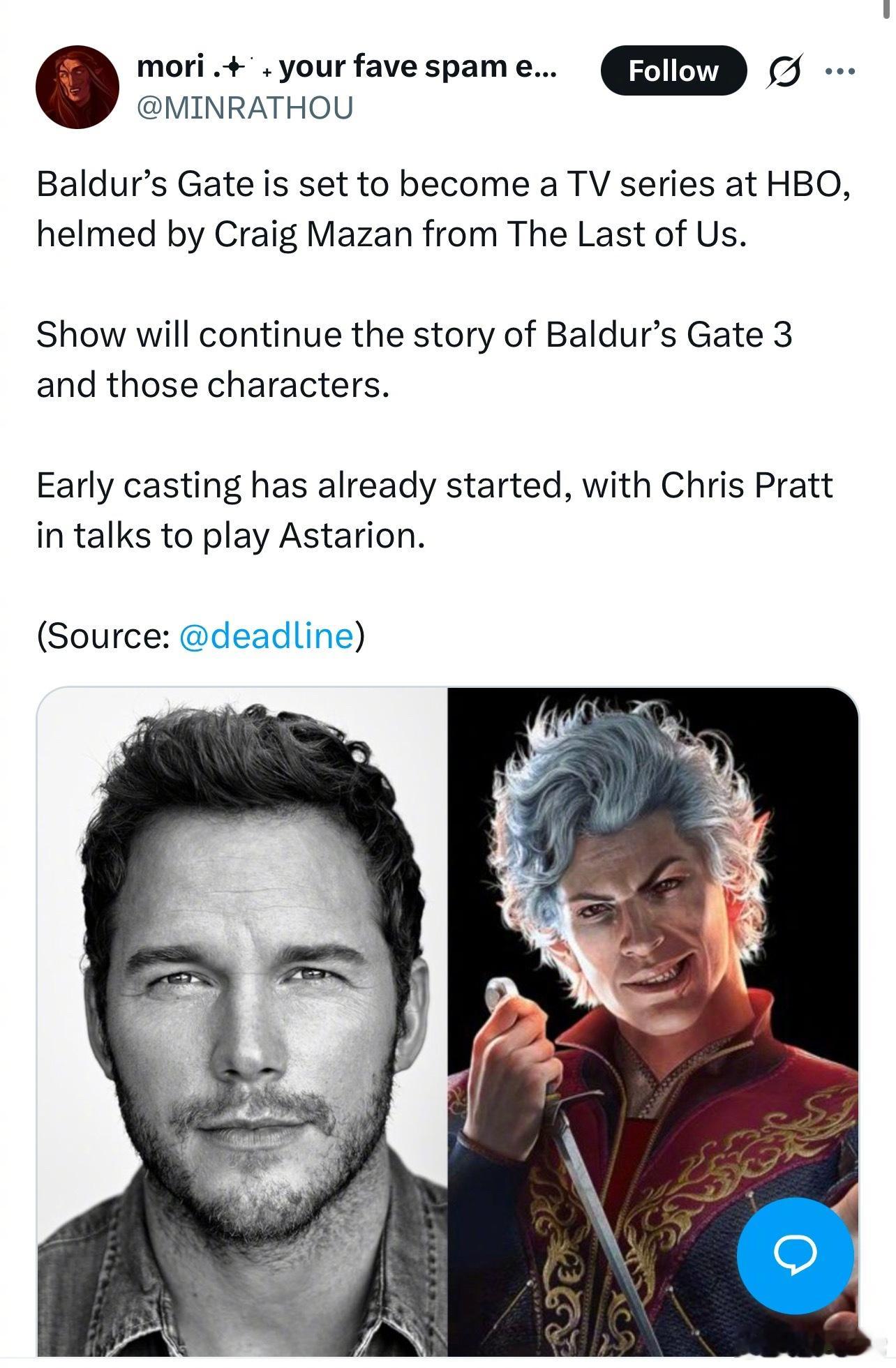 “星爵”克里斯·帕拉特可能将在HBO剧集《博德之门》中饰演阿斯代伦