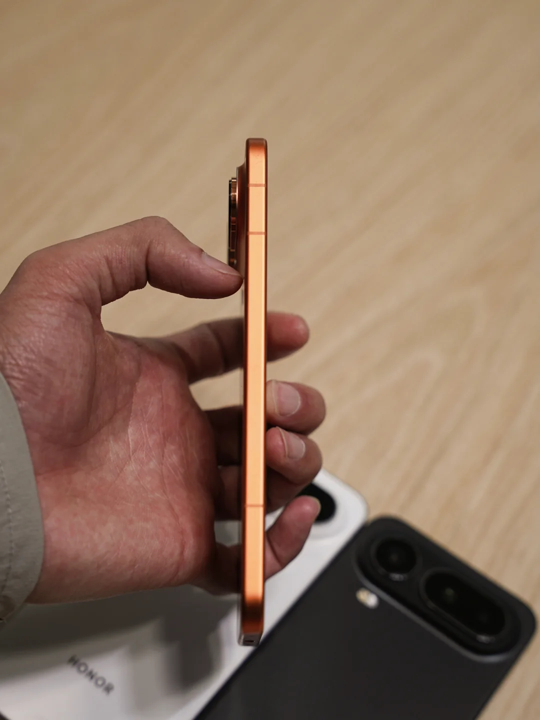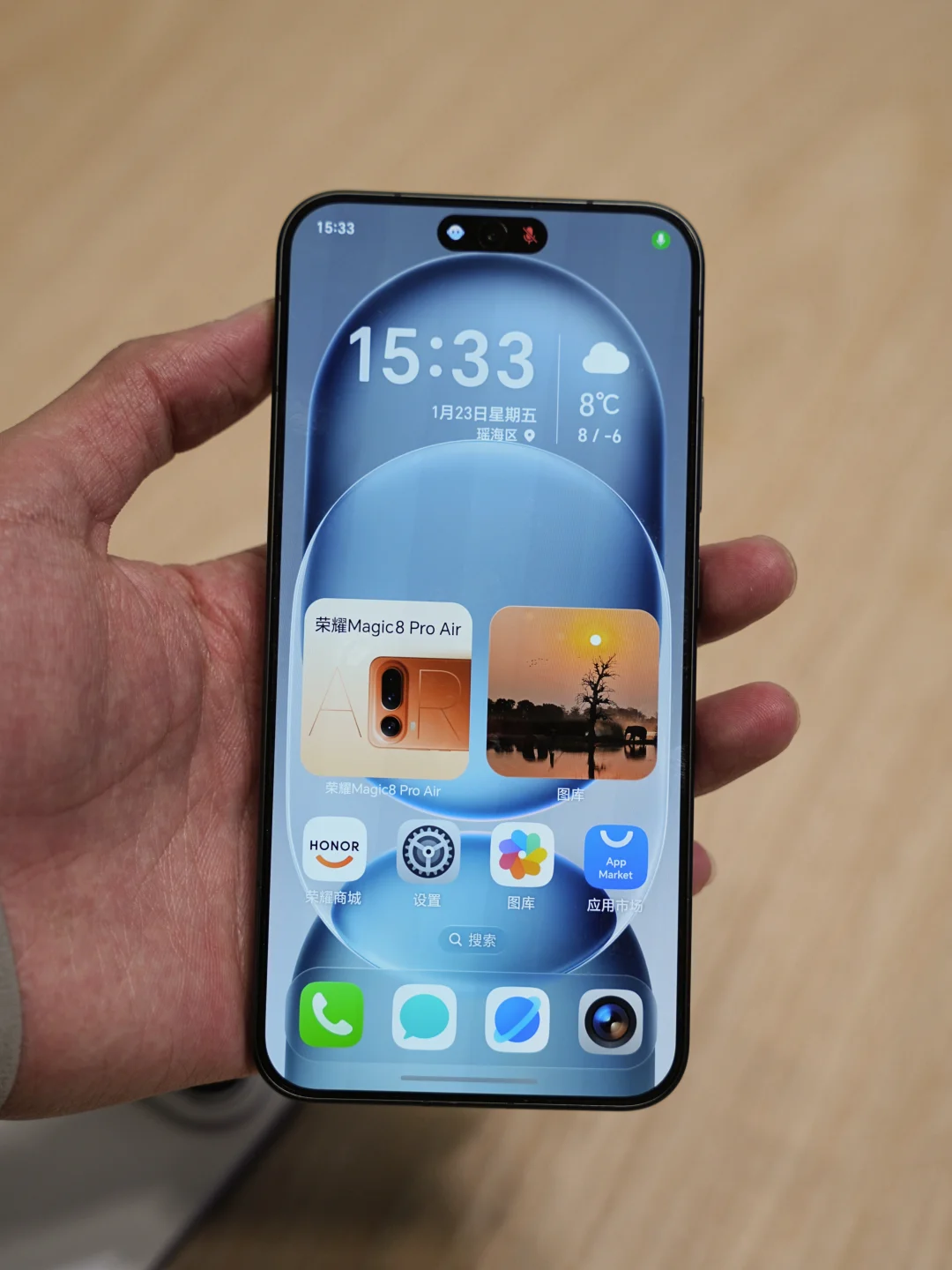 ​逛街路过门店,进去体验了一下荣耀Magic8ProAir,还是忍不住想吐槽,不仅是吐槽,也有点赞。 ​本来今天只是陪朋友去商场修手机,路过荣耀柜台,一眼就被这台Magic8 Pro Air给吸住了。没成想,我就在柜台这儿把玩了十几分钟,员工也挺好的,就在边上陪着,没让我感到压力。当我拿起手机的第一感受就是,这手感真的令人忍俊不禁的赞叹。 因为用惯了旗舰,就会发现它的​这种纸片感太不真实了,你想想现在大家用的旗舰机,哪个不是200多克?但这台Air拿到手的一瞬间,简直跟塑料卡片一样,​6.1mm、155g,这种数据在店里配合那种金属冷冰冰的触感,冲击力确实非常强。质感上有航空铝中框,虽然薄,而且握着很扎实,边缘完全不割手。我单手滑了几下,那种久违的、大拇指能轻松够到屏幕对角线的掌控感,真的让我想到了10年前的荣耀10的手机时代。这6.31英寸的直屏,简直是单手党的福音。 ​现场试了试拍照,简单发表下观点,这个价位有长焦本身就是超标,而且​在店里这种复杂的光线下,我特意对着远处专柜的Logo试了试。6400万的潜望头,​我用它随手就能拉到5倍、10倍,对焦速度很快,出片也没涂抹感,细节很扎实。比起那些为了轻薄只给个两倍人像镜头的机型,荣耀这次在影像上确实没怎么妥协,这点在店里试用时挺拉好感的。 还有​几个比较现实的小发现,而且这些可能不是大家光靠参数就能看出来的, 第一就是​温度上来得快: 我就在店里试了试连拍和开了会儿游戏,背板摄像头那一圈就开始微微发热了。果然,机身薄了,散热这种物理极限确实难顶。喜欢玩游戏的还是老实选荣耀win吧。 还有​解锁上它作为Proair,没有3D面部识别感觉有点“名不符实”,虽说不影响用,但毕竟4999元起的机器,能加上不是更好吗? 这一番体验下来,让我觉得手机啊,还得自己上手看,哪怕是像我这样简单体验个几十分钟,也比在网上听人说要强。依我看,荣耀Magic8ProAir就不是给那种“性能怪兽”准备的,而是给追求极致手感、想给小拇指减负的人做的。6.1mm的厚度拿在手里,那种精致感确实比看参数要强得多。如果你也打算去店里摸一摸,建议重点试试拍照和发热程度你能不能接受?能接受就没什么大问题。