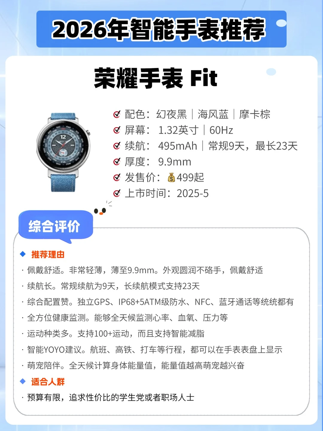 [向右R]如果预算500左右,追求性价比,喜欢萌宠陪伴,建议选荣耀手表Fit;