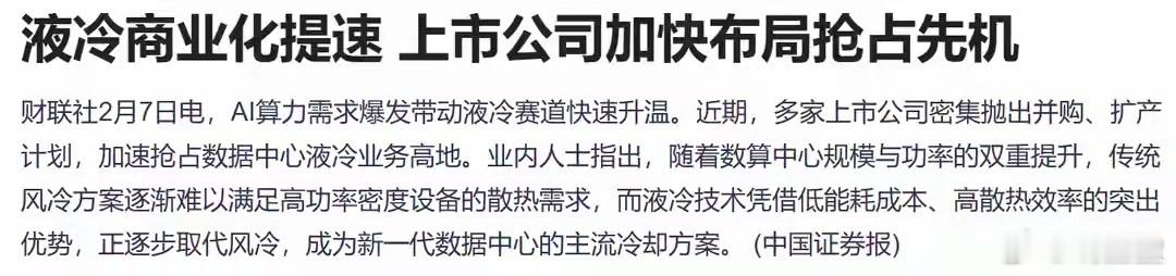 液冷服务器赛道近期利好频传,商业化进程持续提速,多家上市公司通过密集并购与扩产抢