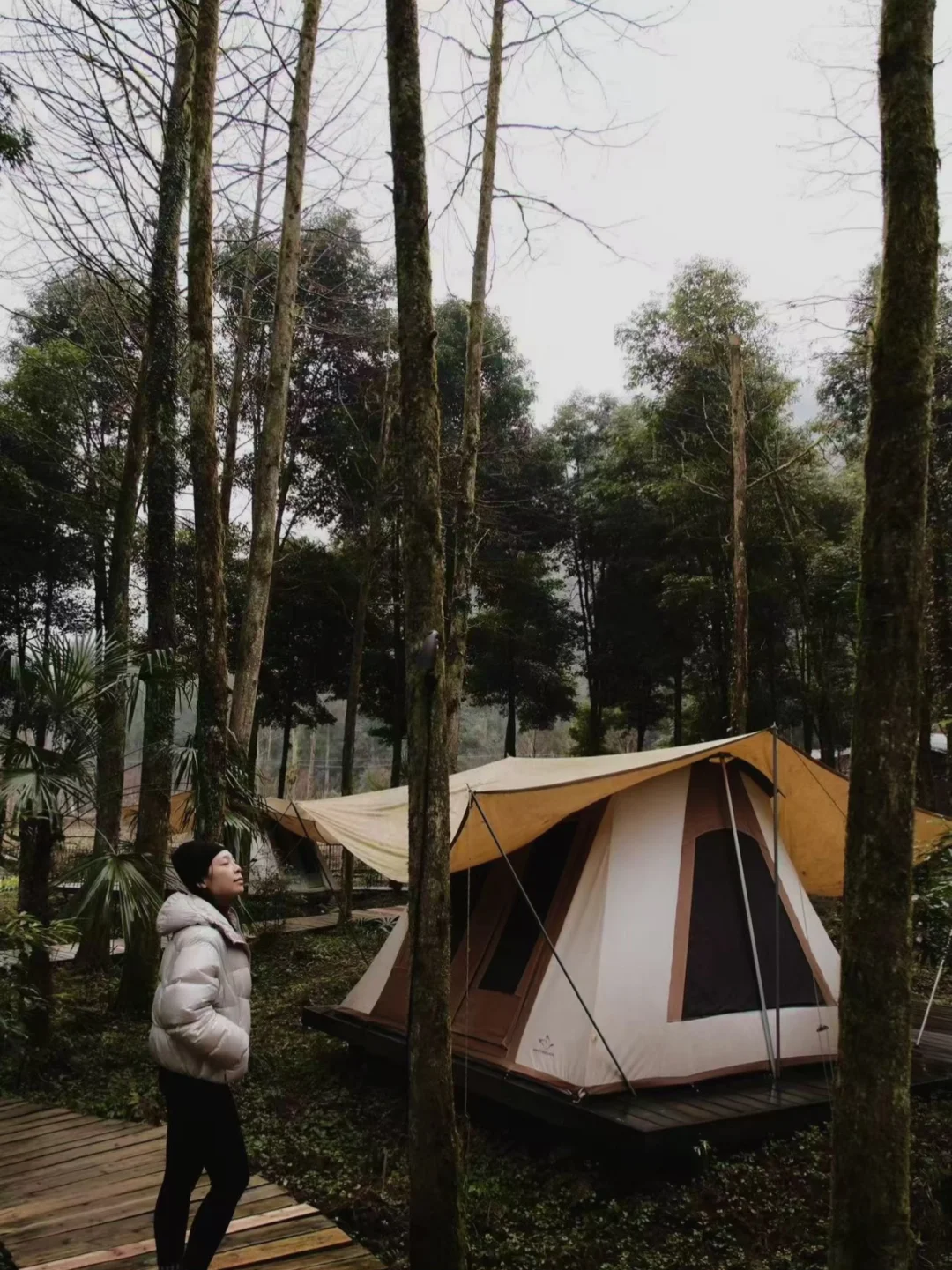 早上拉开帐篷就是雪山森林,狠狠吸一口没有天花板的空气。