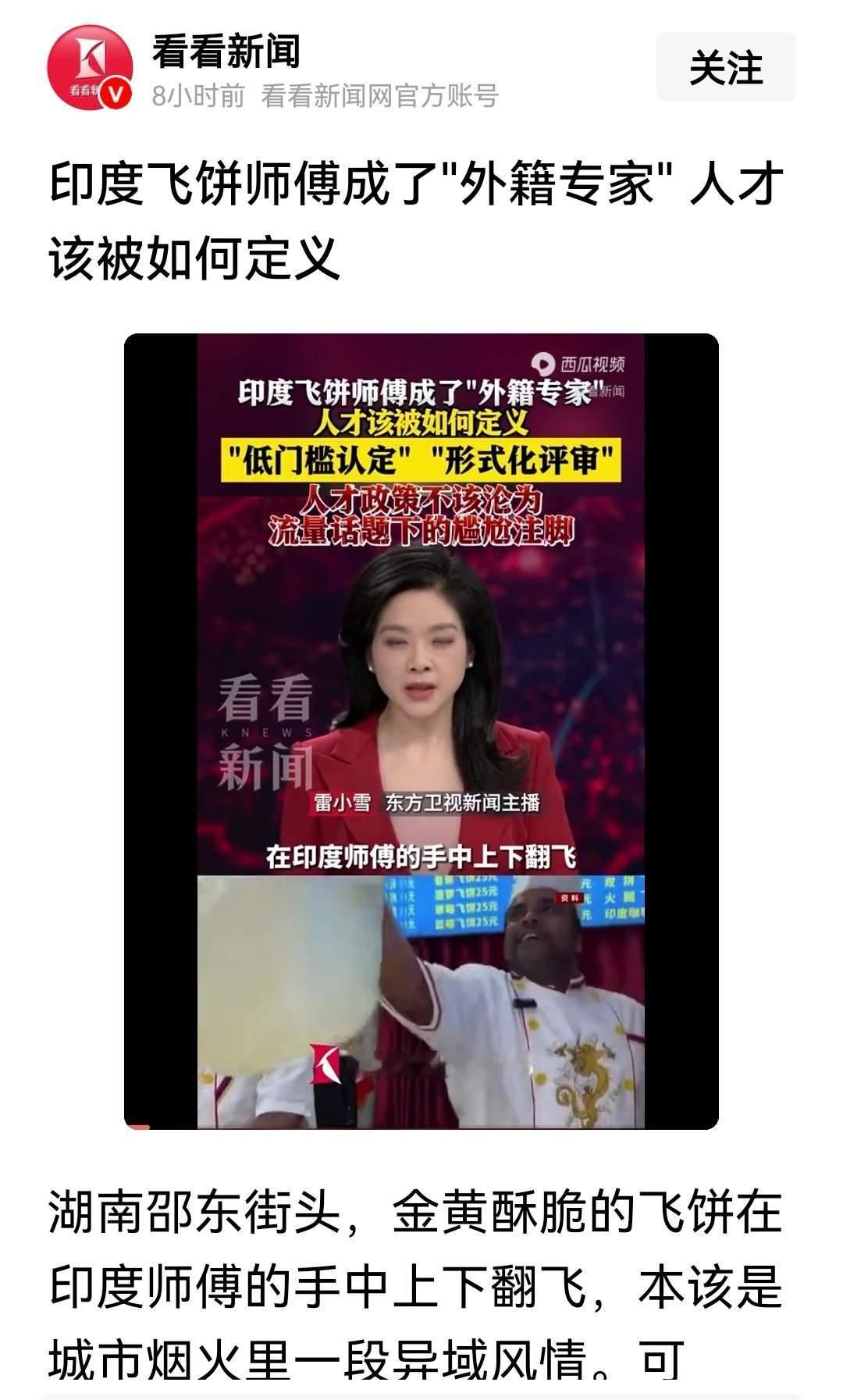 现在专家这称号算是彻底玩出花了,湖南邵东直接整了个爆笑名场面,街头做印度飞饼的外籍师傅,居然被官方认定成了“外籍专家”,还能领专家费,直接把网友笑麻了! 网友们纷纷说照这个认定标准,咱大街上的师傅们可都藏龙卧虎了!甩面贼溜的抻面师傅,剪发手艺超赞的托尼老师,夜市里火候拿捏一绝的烧烤师傅,甚至修东西手到擒来的修车师傅,全有资格去邵东领专家证,凑个民间专家天团都绰绰有余,那专家费不得领到手软?