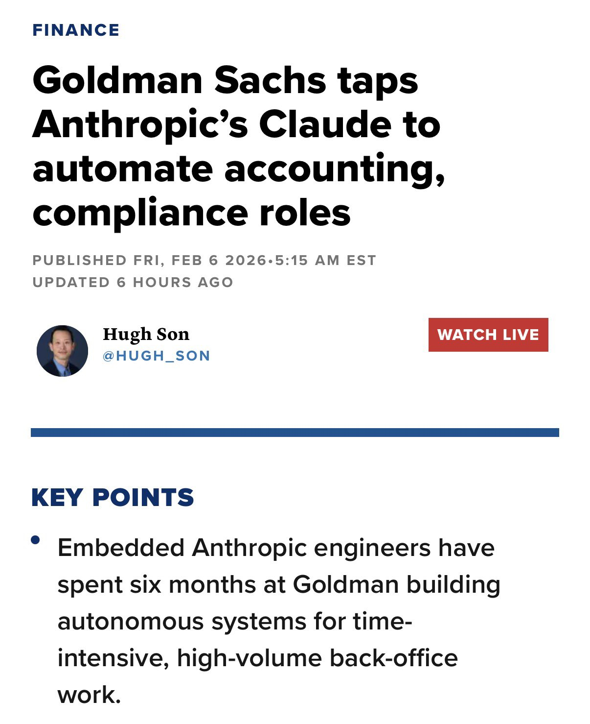 高盛正与 Anthropic 深度合作,用 Claude 打造 AI 自主代理,自动化交易核算、客户尽调与开户等后台工作。最早 Claude 在高盛只被用作写代码,但后来发现会计合规这种复杂规则任务都超预期,未来计划扩展到员工合规监控和Pitchbook 的制作👀