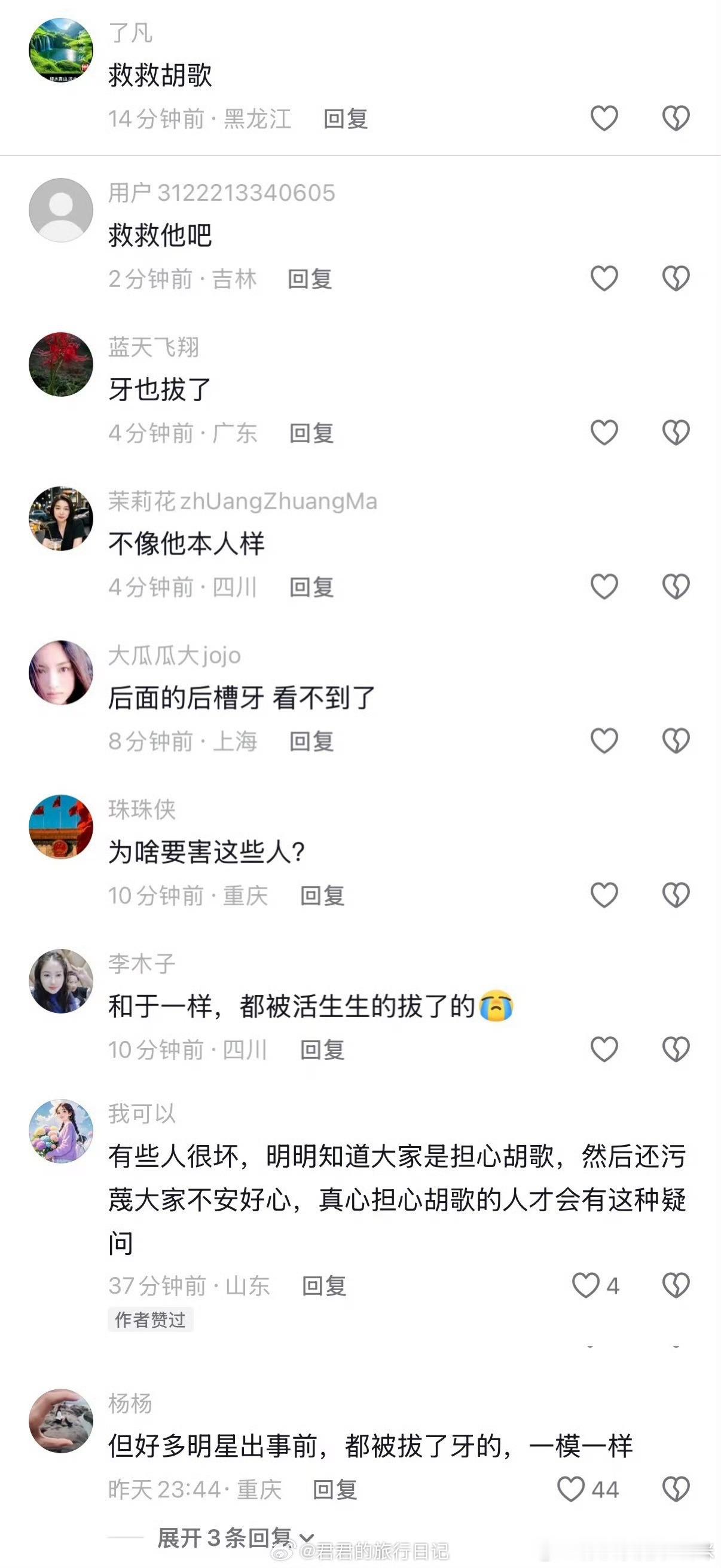 抖音神人们又把心疼的幻觉伸到了胡歌身上,怀疑他被戴了电子脚链,还有就是开局一张图内容全靠编,说他牙被拔了,肯定被欺负,更有甚者怀疑现在大家看到的胡歌不是胡歌,是假人