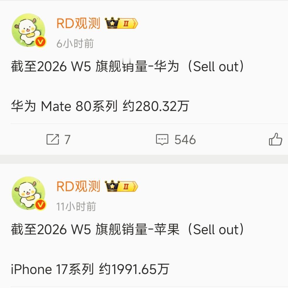 可喜可贺,华为Mate 80系目前销量280万+台,不出意外的话,W6能突破300万台,虽然同期比不上iPhone17系,但真正细思极恐的是,这每周20万+的数据增量,是在自研芯片麒麟的缺货下,出来的,也就是说,要是敞开了造,还能在吃掉苹果不少份额,所以,在产能良率没有任何问题下,估计500万都能上,真不是吹捧,这就是能达成的事实,也不是吹牛,当然,就是吹过的牛都实现了。
