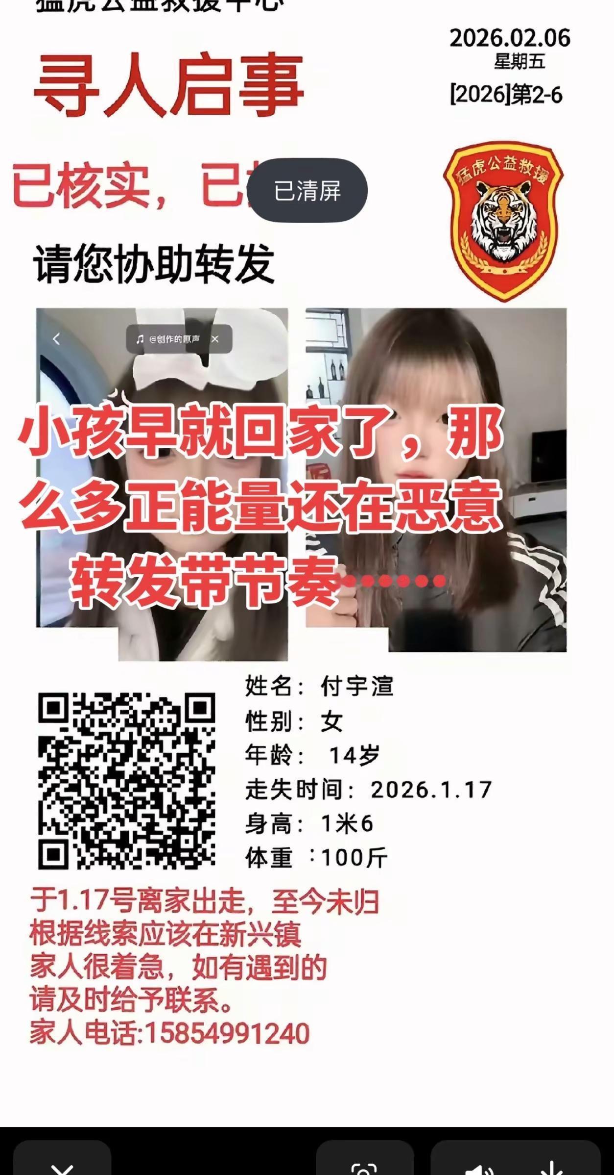 失踪失联孩子山东临沂14岁女孩早就回家了请转告下架作品