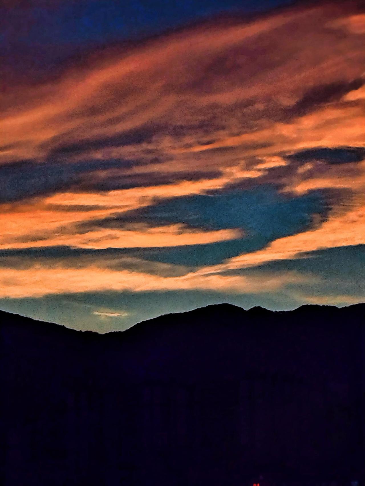 日落时分,云海翻滚,山峦起伏,静谧而壮丽。那绚烂的色彩在天际肆意晕染,橙红与金黄交织,似是被哪位艺术大师不经意间打翻了调色盘,泼洒在这广袤的天空之上。 云海在风的轻抚下,如灵动的绸带般不断变换着形状,时而像奔腾的骏马,时而又似温顺的绵羊。山峦在夕阳的余晖中,被镶上了一层金边,轮廓愈发清晰,仿佛一幅天然的水墨画。 此时,大地上的一切都被这瑰丽的夕阳所笼罩。林间的鸟儿也停止了喧闹,静静地栖息在枝头,享受着这片刻的宁静。我静静地站在这美景之中,沉醉在这如梦如幻的画面里,感觉自己的心灵也被这壮丽的夕阳所洗涤,所有的烦恼和疲惫都烟消云散。 若是能将这手机里的夕阳照分享出去,想必也能让更多人感受到这份大自然带来的震撼与美好。