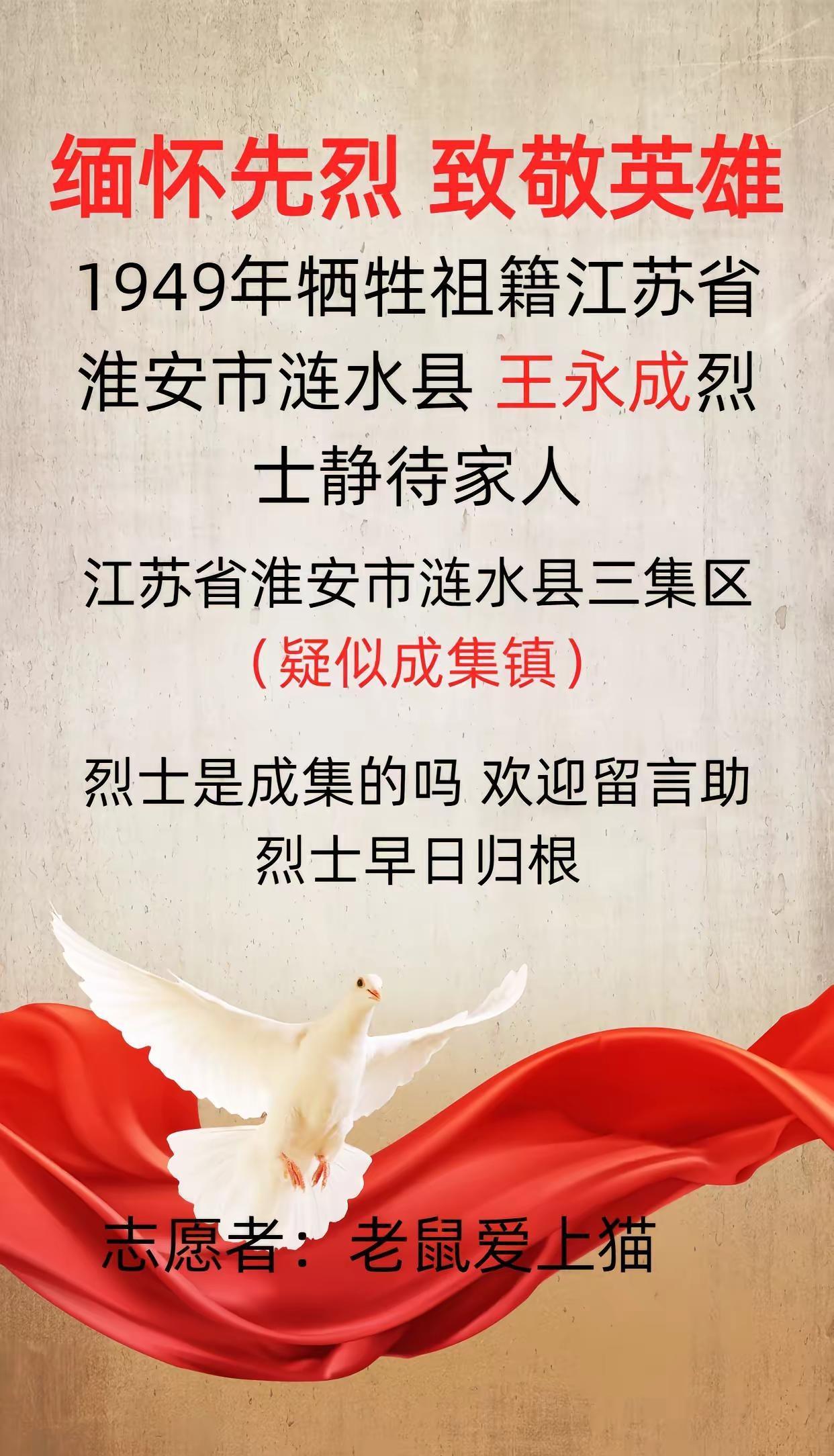 淮安市涟水县 王永成烈士静待家人。淮安 涟水 让英雄回家 寻亲 烈士