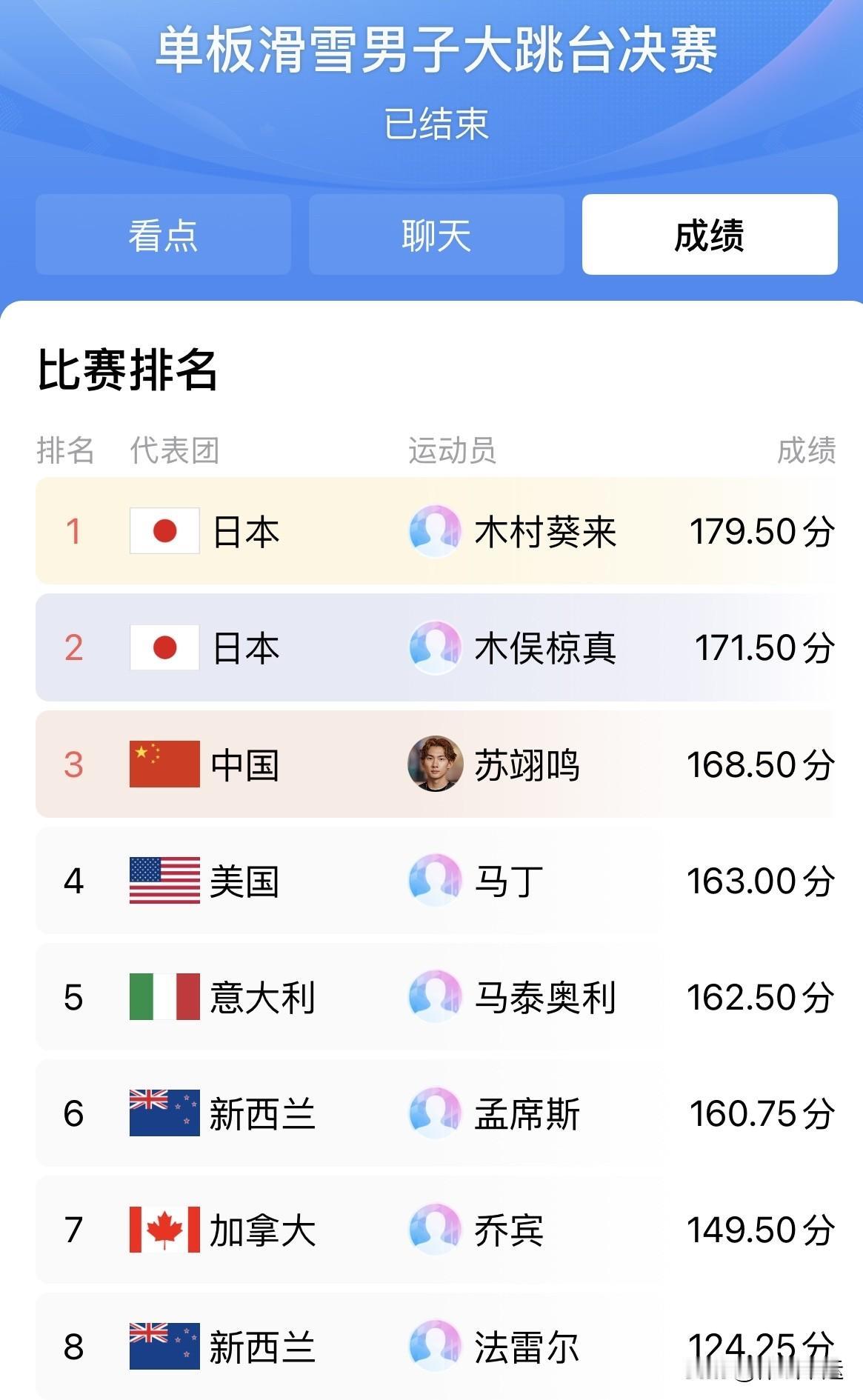 [呲牙]卫冕冠军无缘卫冕[捂脸][捂脸]集齐冬奥会金银铜牌[捂脸][捂脸][捂脸] 米兰冬奥会单板滑雪男子大跳台决赛,看得人心里五味杂陈。苏翊鸣作为卫冕冠军,这次冲击冠军压力巨大。预赛他第一跳失误,好在后面调整顺利晋级,成了中国代表团在该项目决赛的“独苗”。 决赛里苏翊鸣第一跳发挥出色,拿到 88.25 分暂列第二。可惜第二跳和第三跳落地都触雪,最终总分 168.50 分获得第三,日本选手包揽冠亚军。尽管没卫冕成功,但苏翊鸣能在强手如云的赛场拿铜牌,已然不易。赛后他的落泪,有遗憾也有欣喜。竞技体育就是这样充满变数,苏翊鸣未来依旧可期! 北京冬奥会苏翊鸣获得单板滑雪大跳台金牌、单板滑雪坡面障碍银牌!
