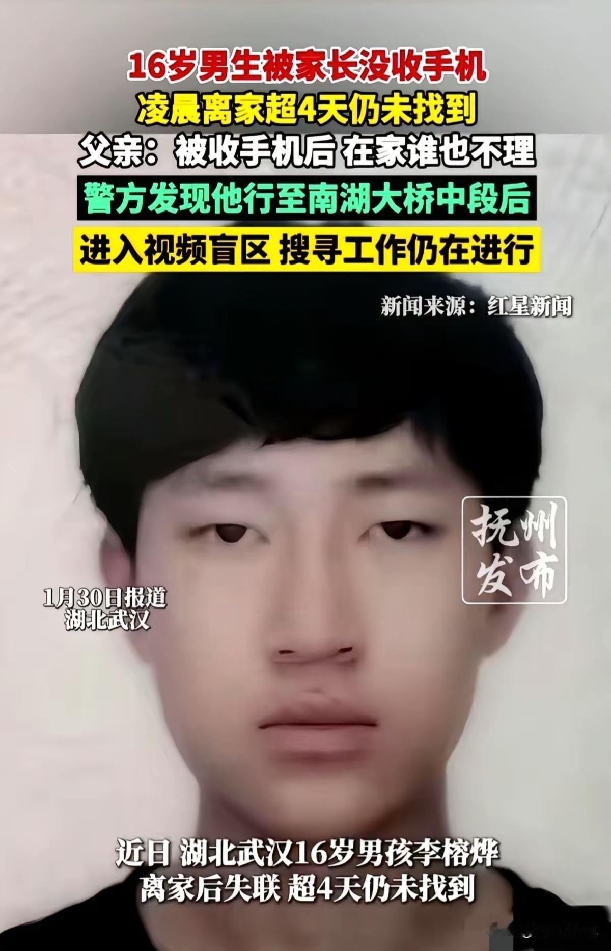 冬日生活打卡季1月30日报道:湖北武汉。16岁男生被父亲没收手机,凌晨离家出走,至今未归,这都是望子成龙惹的祸。