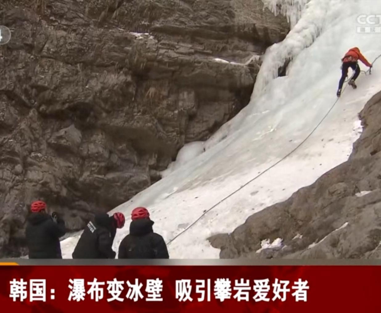 韩国多地瀑布在低温天气下凝结成壮观冰壁,吸引大量攀岩爱好者前来挑战。在全罗北道的一处冰瀑,数十名爱好者穿戴专业装备,借助冰镐和冰爪,沿着陡峭冰面向上攀爬。阳光照射下,冰壁泛着幽蓝光泽,既带来独特视觉体验,也对挑战者的技巧与胆量提出考验,成为冬日限定的户外胜地。