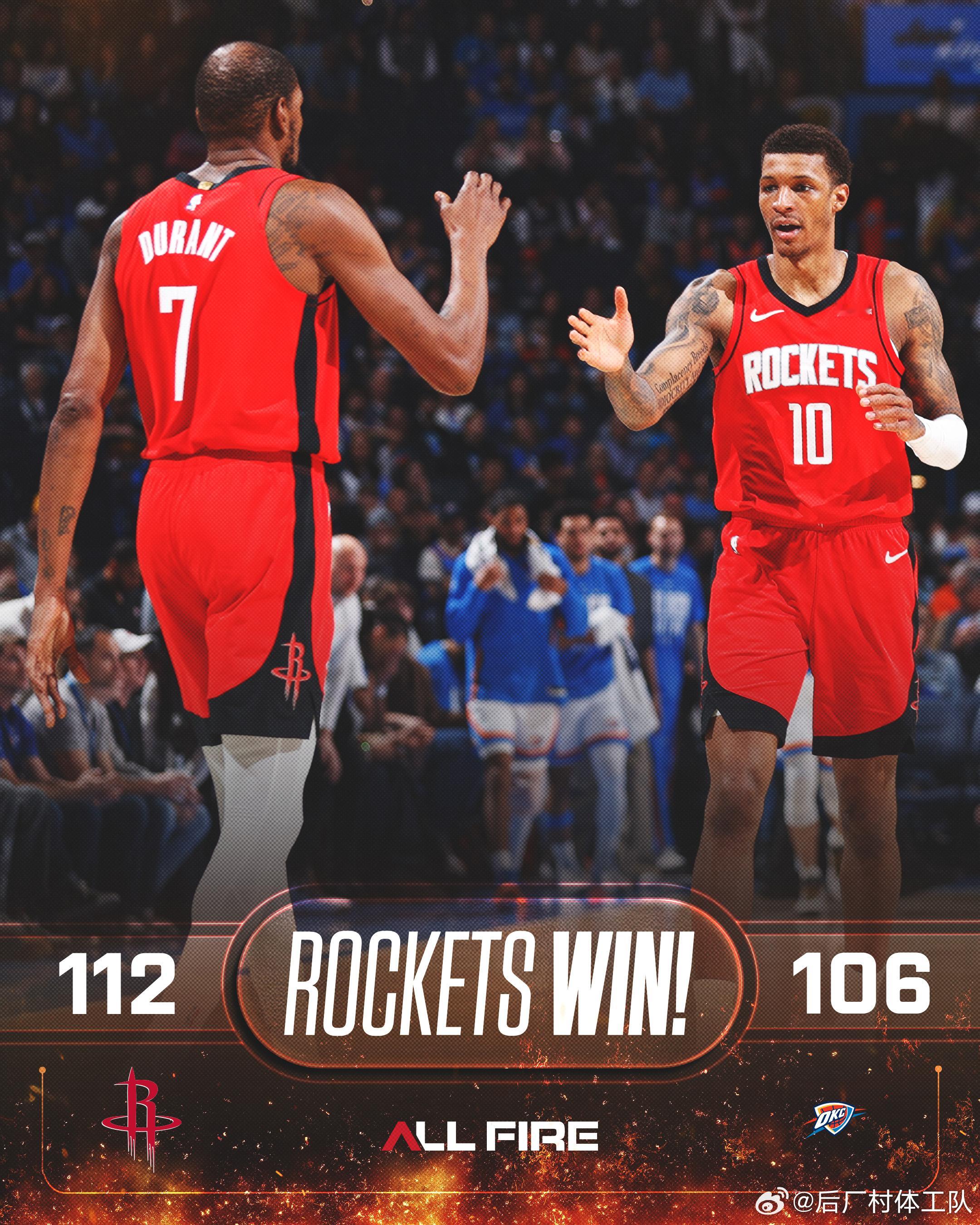 火箭这边阿门-汤普森缺阵,伊森首发拿到26分8篮板,小贾巴里-史密斯22分10篮板,杜兰特20分,申京17分12篮板11助攻,谢泼德16分。