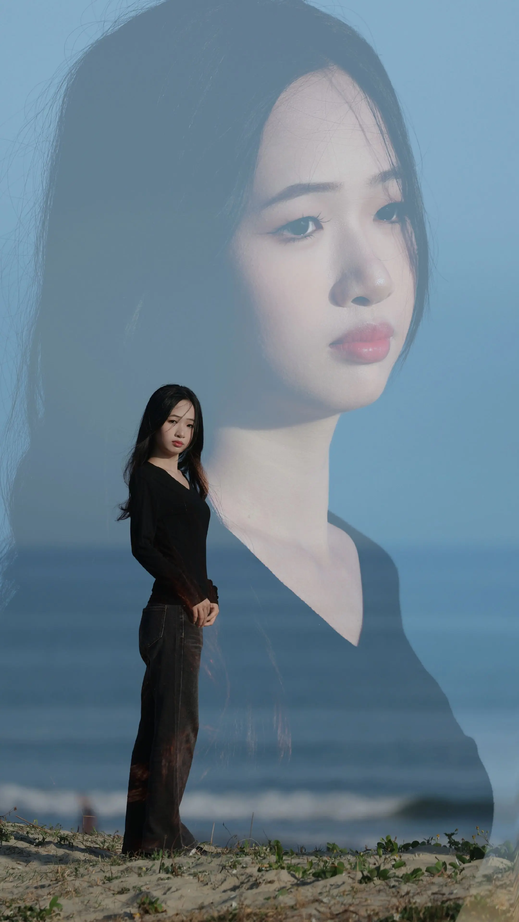 自由感拍照随性穿搭海的声音摄影