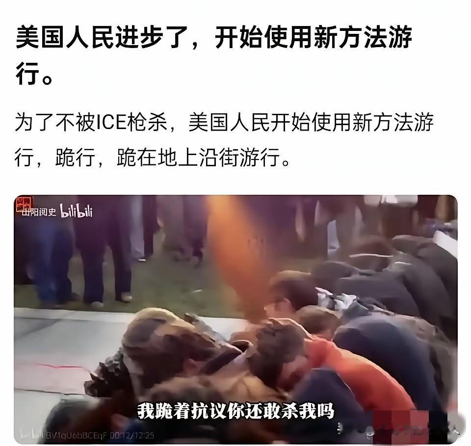 我宣布,2026年度最“进步”的美式行为艺术,非“跪行抗议”莫属。 以前总说“站着把钱挣了”,现在美国人告诉你:“跪着把命保住了”,才是人生赢家。 遥想当年,马丁·路德·金站在林肯纪念堂前,喊出“我有一个梦想”。 现在他的徒子徒孙们,用膝盖在马路上“写”下了新的祷文:“我有一个膝盖,求你别开枪”。 这波反向操作,直接把“美国梦”给跪成了“美国噩梦”。 最讽刺的是,连示威者自己都在视频里灵魂拷问:“我跪着抗议你还敢杀我吗?” 只要跪得够标准,子弹就追不上你。 曾经的“自由灯塔”,现在成了“膝盖X光机”。 它不再照亮民众的脸庞,而是专门用来扫描跪在地上的膝盖,看看谁的姿势更标准。 当“站着说话”变成高危行为,当“自由”需要用半月板来换,那座灯塔,早就该改名叫“火葬场”了。