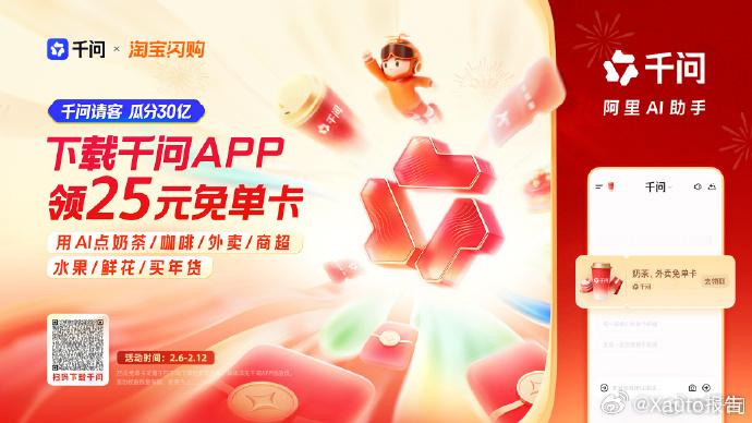 明星都在用AI点外卖了现在AI真的越来越贴近生活了,千问推出25元免单卡,可点奶茶、外卖、买年货等,免单卡延至2月28日,支持分散下单。明星小余、刘宇合作推广,用户体验极佳。刘宇说你喝到AI请客的奶茶了吗千问免单