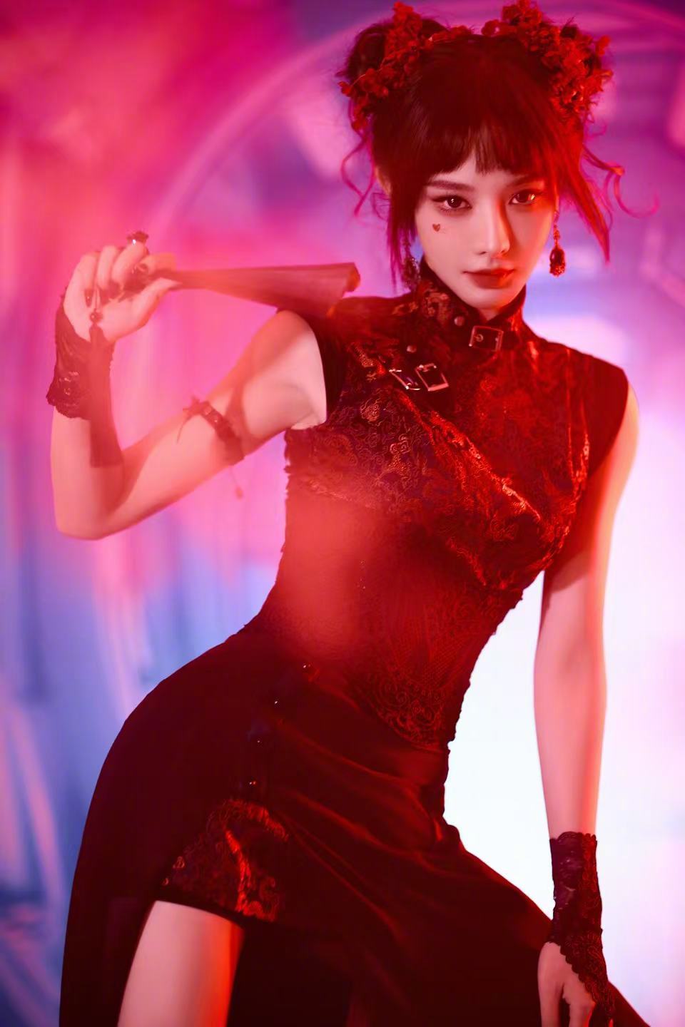 彭小苒cos春丽第一次看彭小苒这样的装扮,真的眼前一亮!新中式旗袍温婉又利落,双丸子头娇俏灵动,把春丽的飒爽和东方美揉得刚刚好。