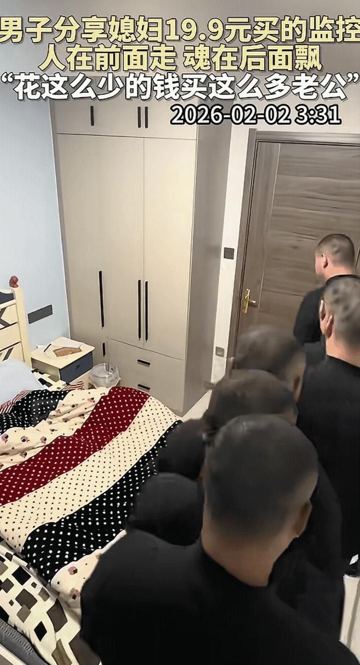 “笑不活了!”一女子在网上买了个19块9的监控,谁知,监控刚装上,当她看到监控画面后就笑得眼泪都出来了,这监控跟开了特效一样!网友:花这么少的钱买这么多老公,值! 深夜的卧室屏幕里,明明只有一个丈夫,画面中却生生挤出了一支队伍。前一个“丈夫”刚躺下,被子还没盖热乎,后一个“丈夫”又接着走过来,仿佛时间在这一刻发生了某种诡异的折叠。 如果不说破,你大概以为这是什么好莱坞科幻片的特效现场,或者是哪位后期大神的炫技之作。但现实往往比剧本更荒诞,这一切的始作俑者,既不是高科技,也不是魔法,而是一个售价仅为19.9元的监控摄像头。 事情发生在今年1月,主角是热衷网购的周女士。这原本是一次极为寻常的消费降级行为:她在网上买闹钟电池时,被大数据精准投喂了这个白菜价的监控。不到一杯奶茶的钱,就能给卧室加道安全锁,周女士几乎没过脑子就顺手下了单。 快递拆封,丈夫不仅毫无怨言,还颇为配合地完成了安装。谁能想到,这竟是这场家庭情景喜剧的开机仪式。为了测试设备灵敏度,丈夫在镜头前又是走动,又是伸手,甚至模拟了全套的入睡流程。 也就是在这一刻,物理世界的定律在19块9的镜头前彻底失效了。信号传输的严重滞后,并没有带来令人烦躁的卡顿,反而误打误撞地制造出了一种“灵魂出窍”的视觉奇观。 最经典的一幕发生在床边。丈夫明明已经钻进了被窝,但在手机屏幕上,却还有好几个“他”正陆陆续续地脱鞋、上床。这场面,活脱脱像是失散多年的三魂七魄正在排队归位。 紧接着是拿纸巾的动作。丈夫起身去客厅,人早就走没影了,监控里却依然残留着他的“残影”,一个接一个地伸手去抽那张纸。这种“人走魂留”的效果,把原本想查岗的周女士逗得前俯后仰,眼泪都笑飙了出来。 相比妻子的“看戏模式”,身为当事人的丈夫显然陷入了深深的自我怀疑。他看着屏幕上那个拥挤不堪的房间,心里直发毛。这种劣质带来的“膈应感”,让他一度想把这玩意儿拆了扔掉。 但在互联网的舆论场里,这台故障的机器却意外迎来了它的高光时刻。视频一经上传,网友们的解构能力瞬间拉满。没人关心这摄像头的安防能力,大家都在计算这波消费的“投资回报率”。 有人戏称这是实现了“老公自由”,原本只能拥有一个丈夫,现在花不到20块钱,直接买回来一个排的兵力。平均算下来,每个“老公”的单价甚至不到几分钱,这简直是消费主义陷阱里罕见的逆袭。 更有人一针见血地指出,画面中正好是“三魂七魄”整整齐齐,一个不少。这种带着点玄学色彩的幽默,瞬间消解了劣质产品带来的愤怒,把一场潜在的维权变成了全网狂欢。 当然,理智的声音从未缺席。大家心知肚明,这种连基本帧率都稳不住的电子垃圾,厂家大概率是没做过任何合格测试就投放市场的。所谓“便宜没好货”,在硬件领域依然是颠扑不破的真理。 但在这个充满不确定性的2026年开端,周女士的这次翻车,却意外提供了一种稀缺的情绪价值。那个在深夜里“排队上床”的画面,或许正是我们在高压生活中,最需要的那一点无厘头的笑料。 归根结底,这19.9元买来的确实不是安全感,而是一张通往荒诞世界的门票。当丈夫还在纠结要不要换个贵的时候,屏幕前的看客们早就笑得停不下来了——毕竟,能让人笑出眼泪的电子产品,如今可是不多见了。