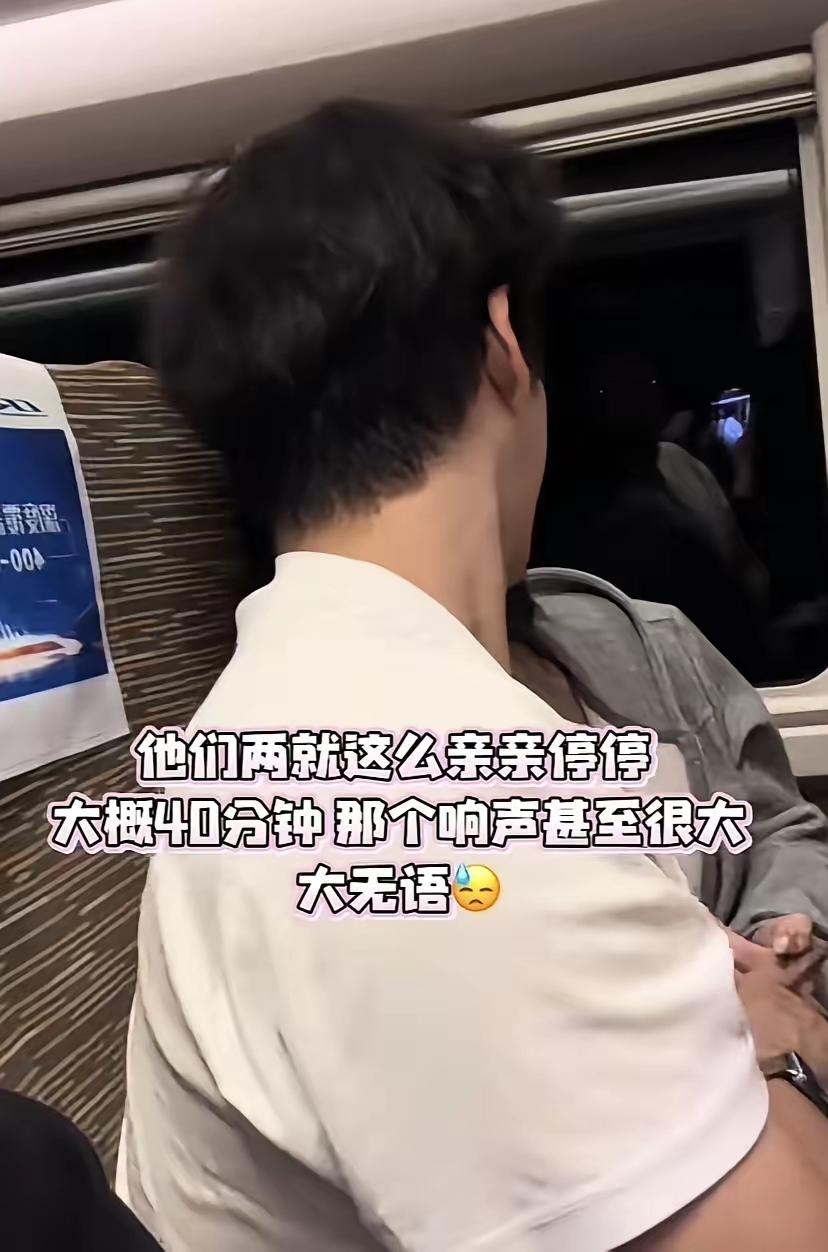 情侣高铁亲吻40分钟旁若无人,网友直呼:这也太没边界感了! 广东高铁上这对情侣,上车就黏在一起亲亲停停,还发出声响,把旁边乘客尬到抠脚,亲的人沉浸其中,看的人如坐针毡。 爱意浓烈本无可厚非,但公共场合从不是秀恩爱的专属地,高铁是大家共享的空间,不是私密的二人世界。 所谓恩爱,从不是不分场合的肆意,而是懂得拿捏分寸,守得住边界的体面。尊重自己的爱意,更要尊重他人的感受,这是最基本的社交素养。 别让一时的甜蜜,变成他人的尴尬,爱意藏在细节里,分寸感才是感情里最珍贵的体面。 你遇到过公共场合过度秀恩爱的情况吗?