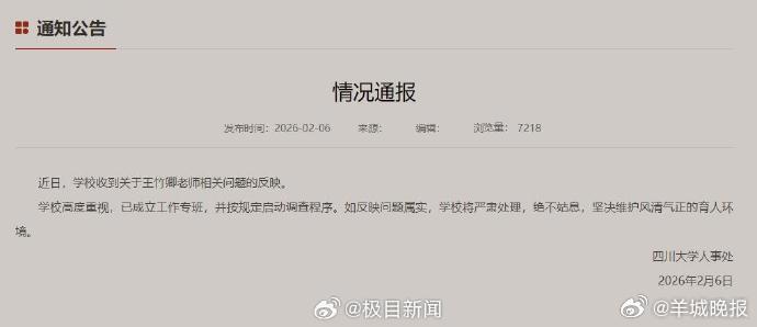 【#川大博导被举报83页材料公开#,校方启动调查程序,知情学生:他向警方报案称被诽谤】#川大被举报博导报案称遭诽谤##川大被举报博导已发表42篇论文#2月6日,四川大学人事处官网发布公告称,近日,学校收到关于王某卿老师相关问题的反映。学校高度重视,已成立工作专班,并按规定启动调查程序。如反映问题属实,学校将严肃处理,绝不姑息,坚决维护风清气正的育人环境。近期,一份四川大学机械工程学院王某卿特聘研究院课题组的在校博士和硕士研究生联合举报材料在网络热传,该举报材料长达83页,指控王某卿疑似存在学术不端、财务问题、违反师德师风等行为。举报材料显示,王某卿疑似存在严重的学术不端行为,包括篡改实验数据、伪造实验流程、一稿多投、数据造假、署名不当;其疑似存在财务问题,学生举报他以学校名义承办学术会议为由,套取经费,要求学生缴纳注册费,收入打入公司账户,再以学校科研经费形式报销会议支出。此外,他以导师名义,将部分学生和科研助理挂职到其公司来发放虚拟工资,以虚列成本、偷税漏税,疑似还存在套取科研经费等行为。举报材料还提到,王某卿长期缺席学院规定的部分教学课程,对学生进行人身攻击、言语威胁,逼迫学生搬入未经验收的办公场所,还发表不当言论等。该举报材料称,王某卿的言行已经导致两名博士生转导师,他公开辱骂联合培养的一名研究生,事后拒不承认其言论,最后将其逐出实验室。记者注意到,近期多个社交平台上多个账号发布举报王某某相关帖子,知乎平台一名网友自称是王某卿联合培养的研究生,本科研究生均为医学生,因不了解纯工科理论,被王某某“长期辱骂”,让他深陷抑郁、出现焦虑和躯体化症状,“最长的一次组会骂我长达二十分钟。”该生自述最后被逐出实验室。一名知情学生告诉记者,上述举报材料在学校内部热传,王某卿在课题组群内传了一张立案通知书,称已就相关言论向派出所报案。2月7日,记者从可靠渠道获悉,2月6日,王某某已就此事向派出所报案,称自己被诽谤。学校官网显示,王某卿现任四川大学机械工程学院特聘研究员、博士生导师,四川大学华西医院医学+制造独立PI教授,四川大学微机电系统与智能传感创新中心负责人。其长期致力于“MEMS传感器及基于MEMS技术的生物医学检测芯片”研究,已发表学术论文42篇,其中SCI论文35篇。(极目新闻)(编辑:郑宗敏;审签:岑杰昌)