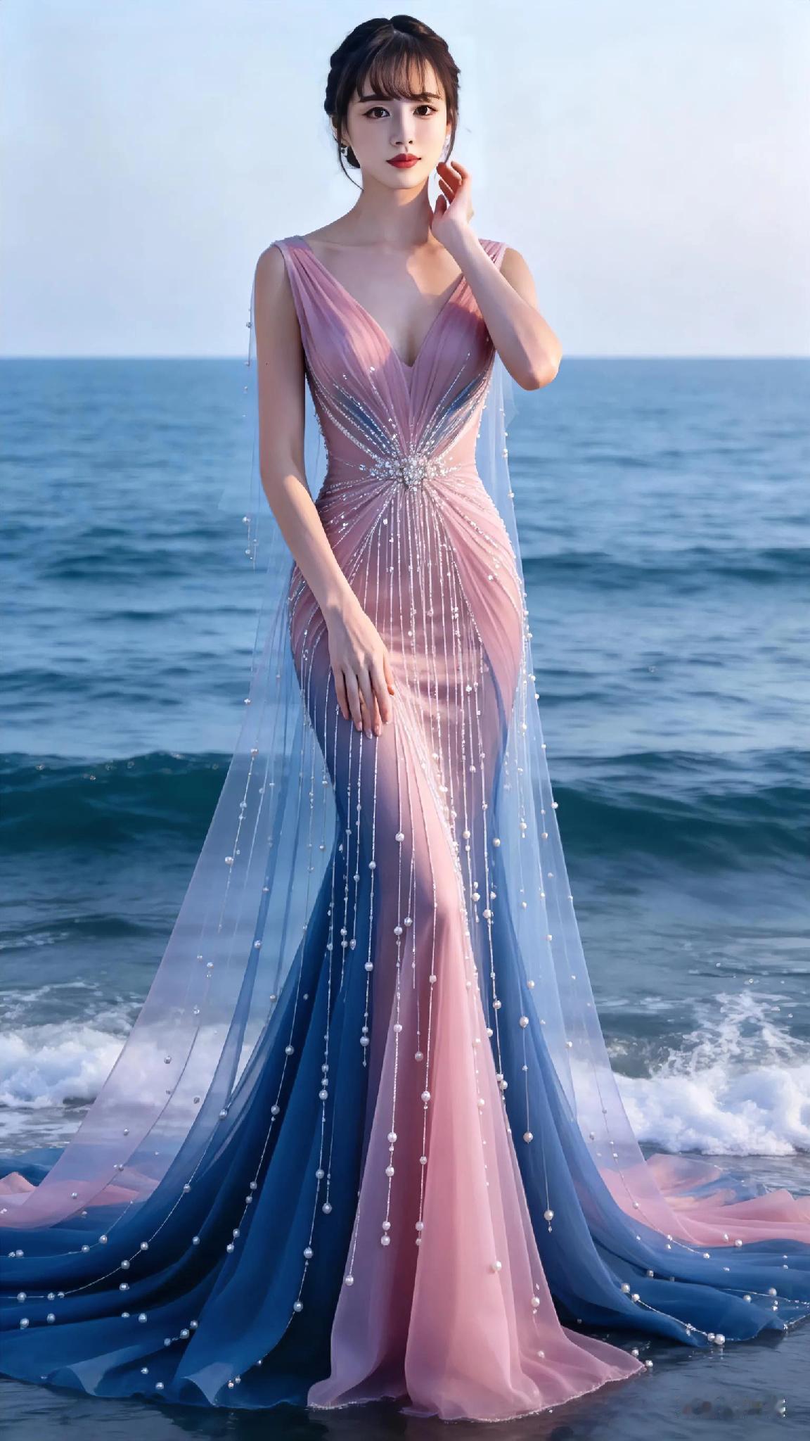海边漫步,粉蓝渐变长裙,优雅动人 白色沙滩长裙 海边氛围感长裙 度假风沙滩长裙 水蓝色长裙 蓝色度假连衣裙 蓝色沙滩裙